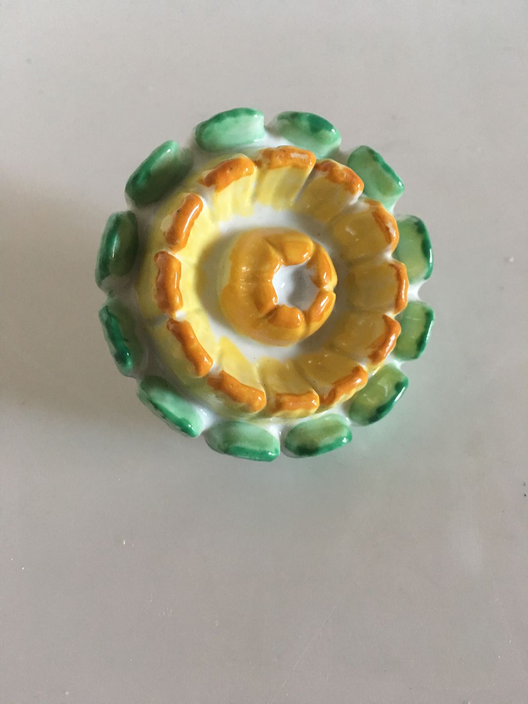 Royal Copenhagen Gul / Grøn Porcelæns Blomst. Har oprindeligt siddet som dekoration på en lysekrone. Måler 6.5 cm diameter og er fin hel stand.