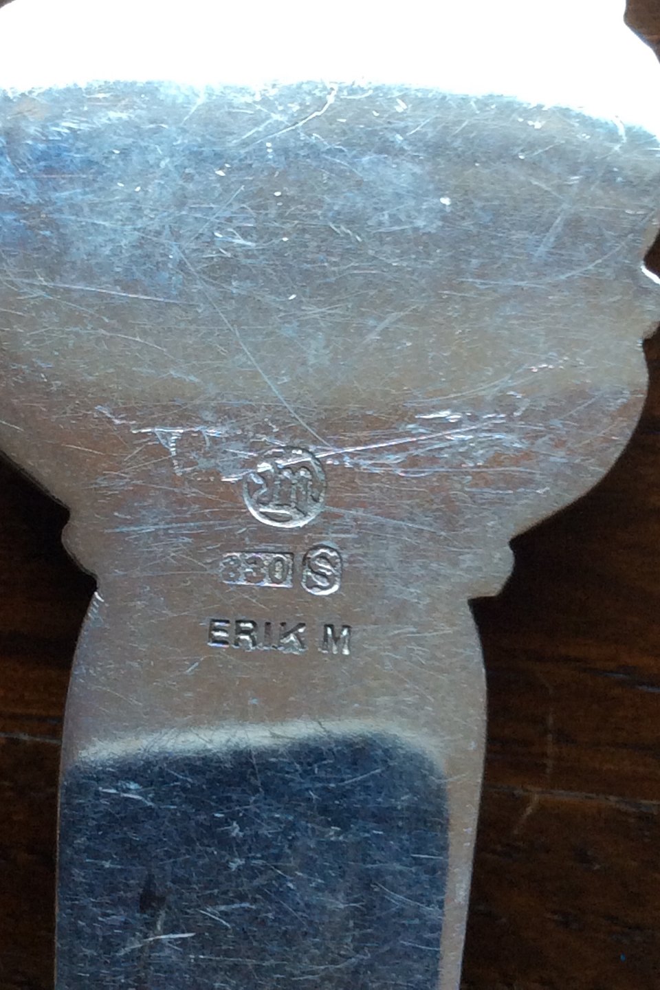 Erik Magnussen sølv 830S ske "Fanø". Måler 19,4 cm