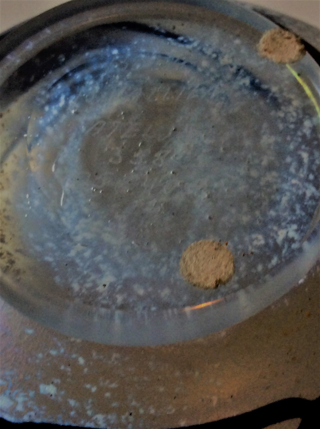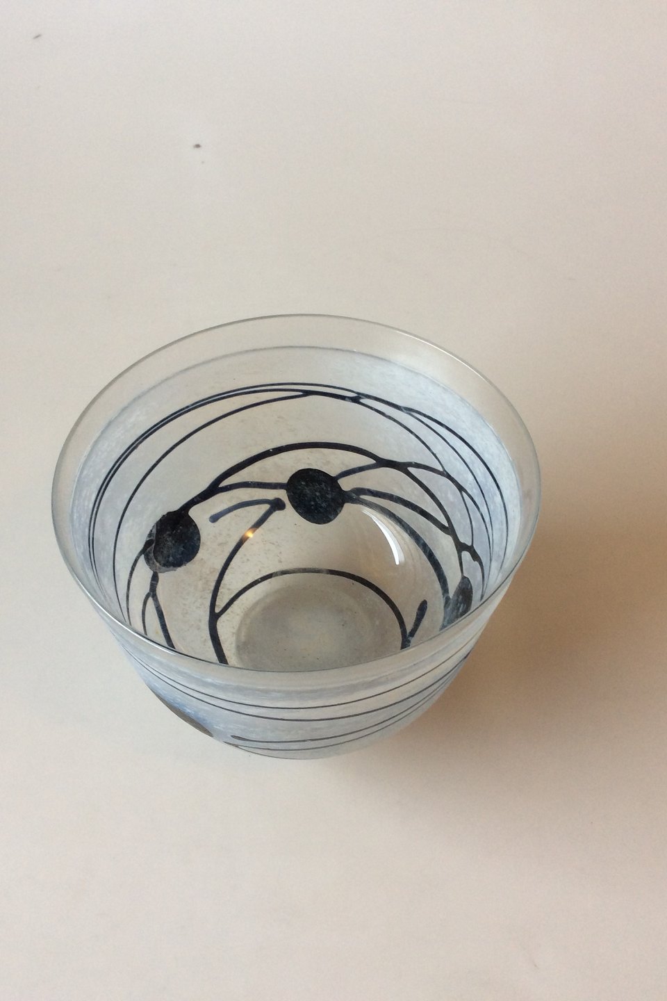 Kosta Boda B.Vallien Atelje Bowl, Iridescent White with Black Modern Design. Measures 15.3 cm / 6 1/32" diameter x 12 cm / 4 23/32" Height