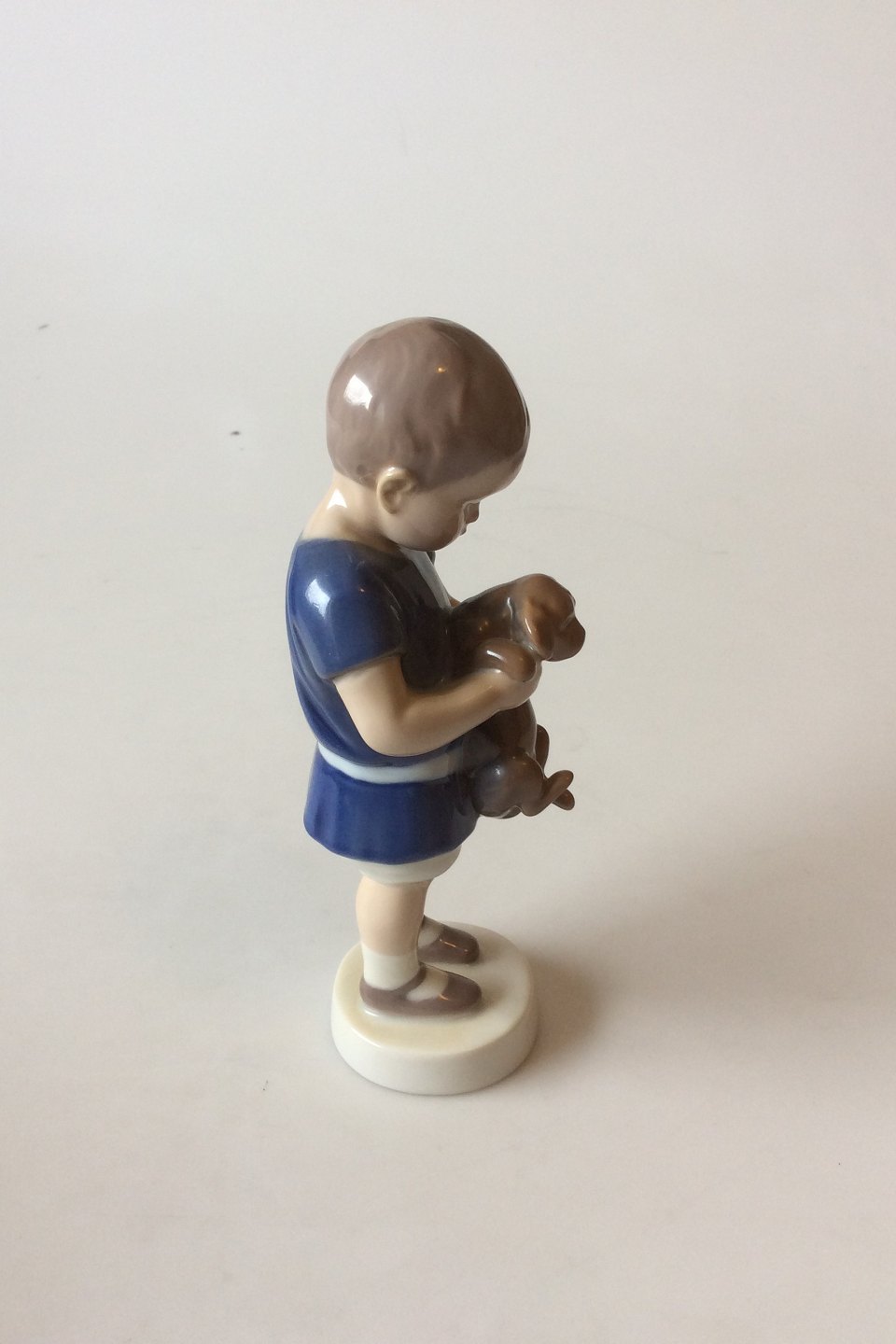 Bing og Grøndahl Figur - Dreng der holder en hund/Ole No. 1747. Designet af Ingeborg Plockross-Irminger. Måler 16,5 cm / 6.5 in.