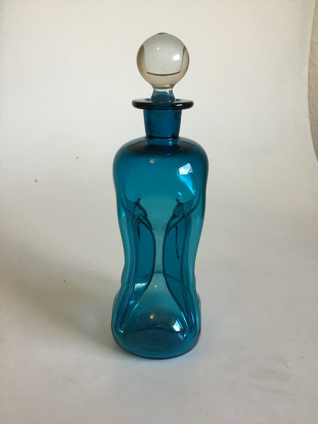 Holmegaard / Kastrup Glasværk Kluk Kluk Karaffel i Blåt Glas. 26,5 cm H. I fin stand.