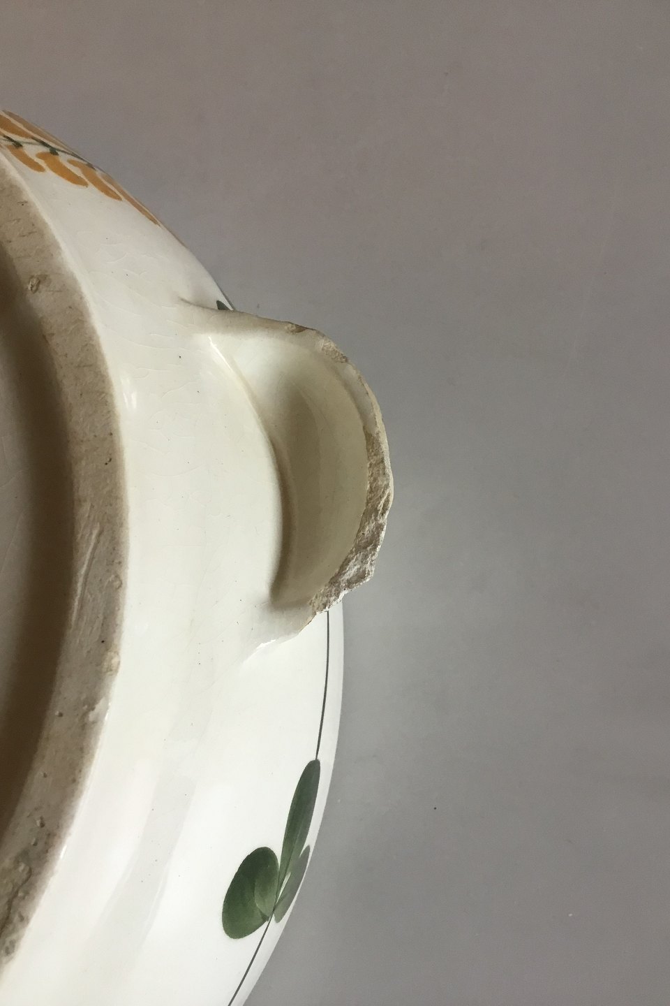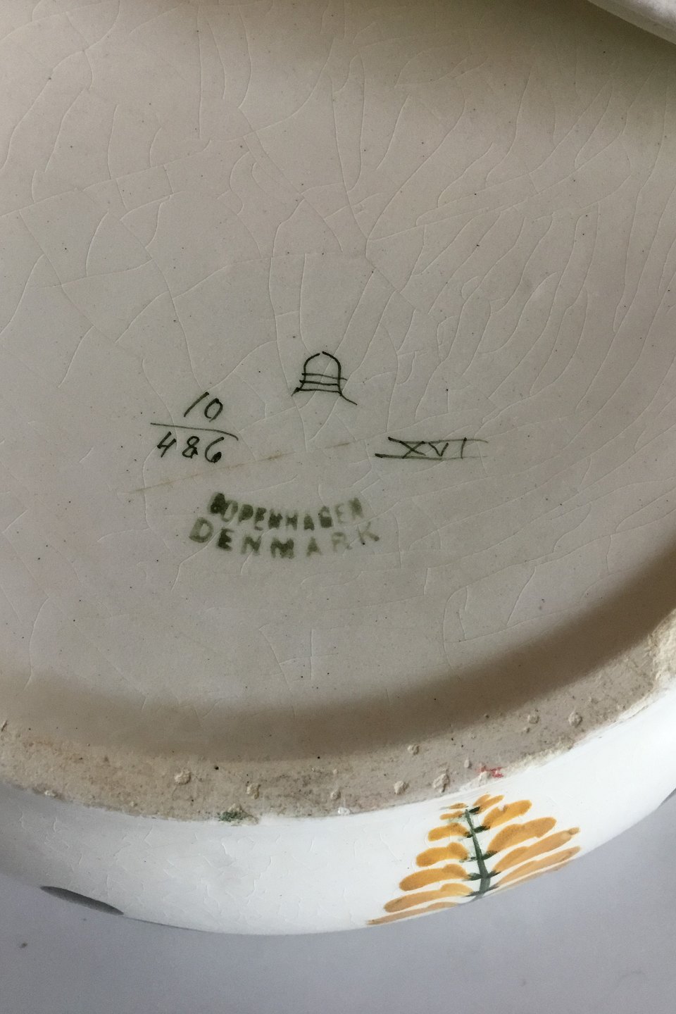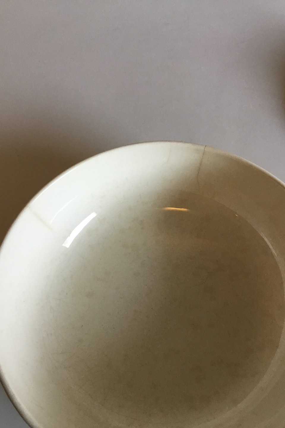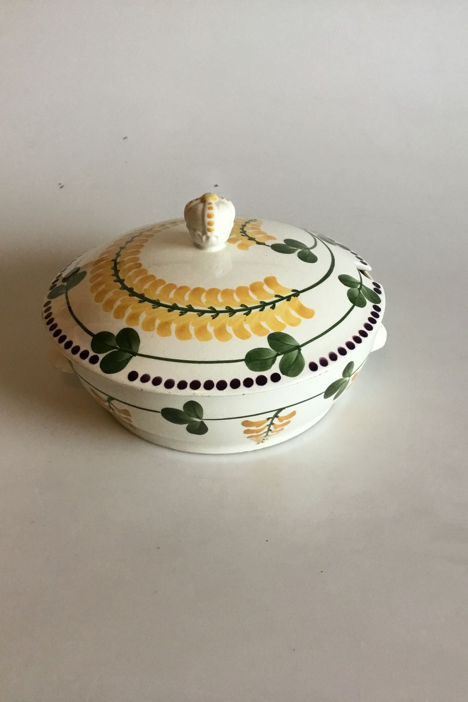 Aluminia Guldregn(Laburnum) Round Bowl with Lid No 10/486. Measures 23 cm dia. x 14 cm / 9 1/16" x 5 33/64". Hairline crack an chip.