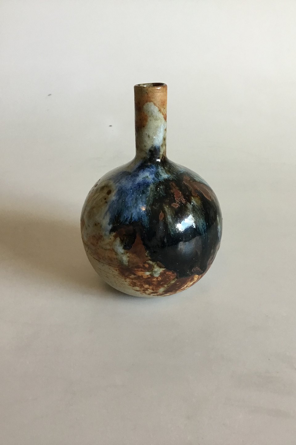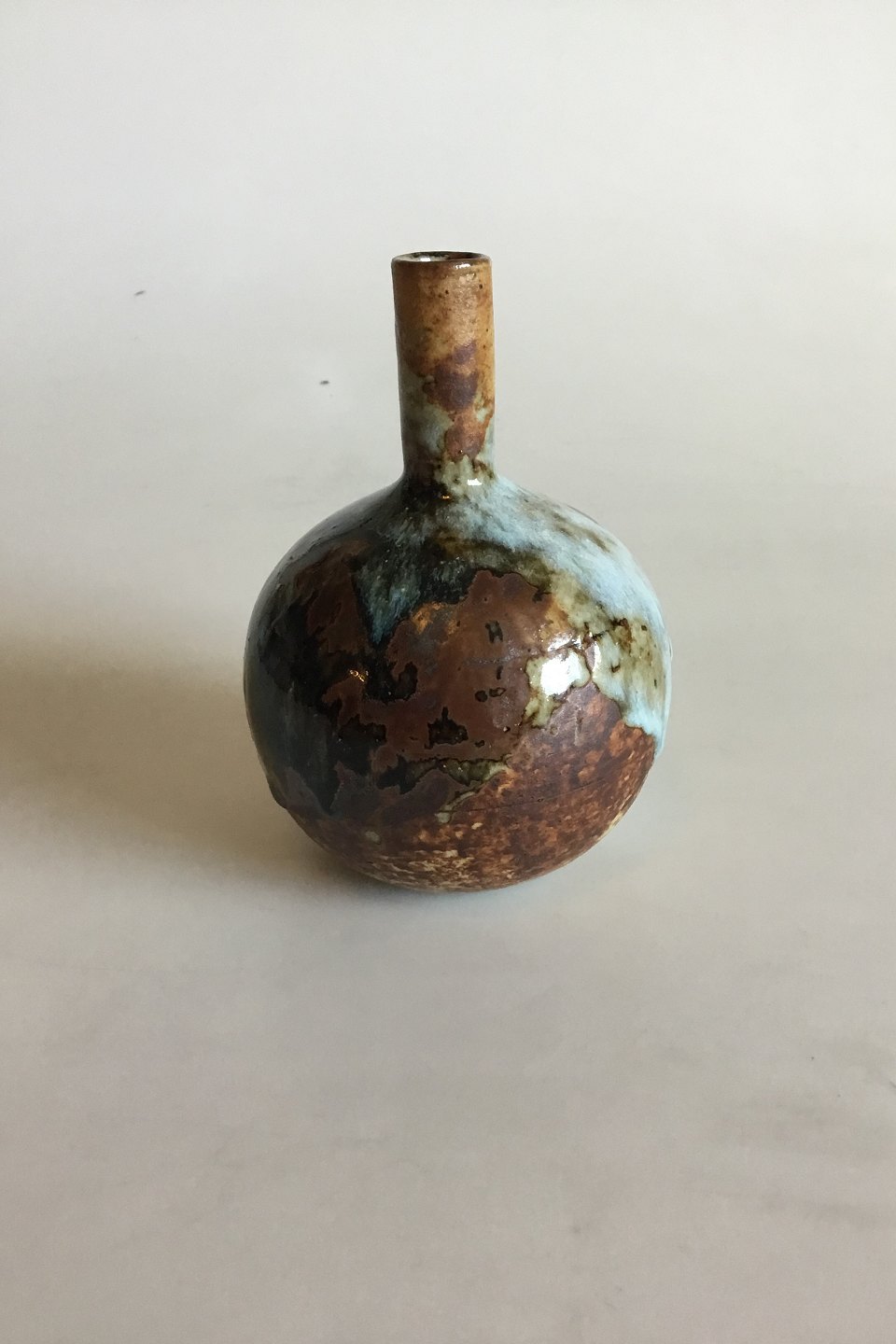 Conny Walther Kugleformet Stentøjsvase med med høj hals. Måler 14 cm