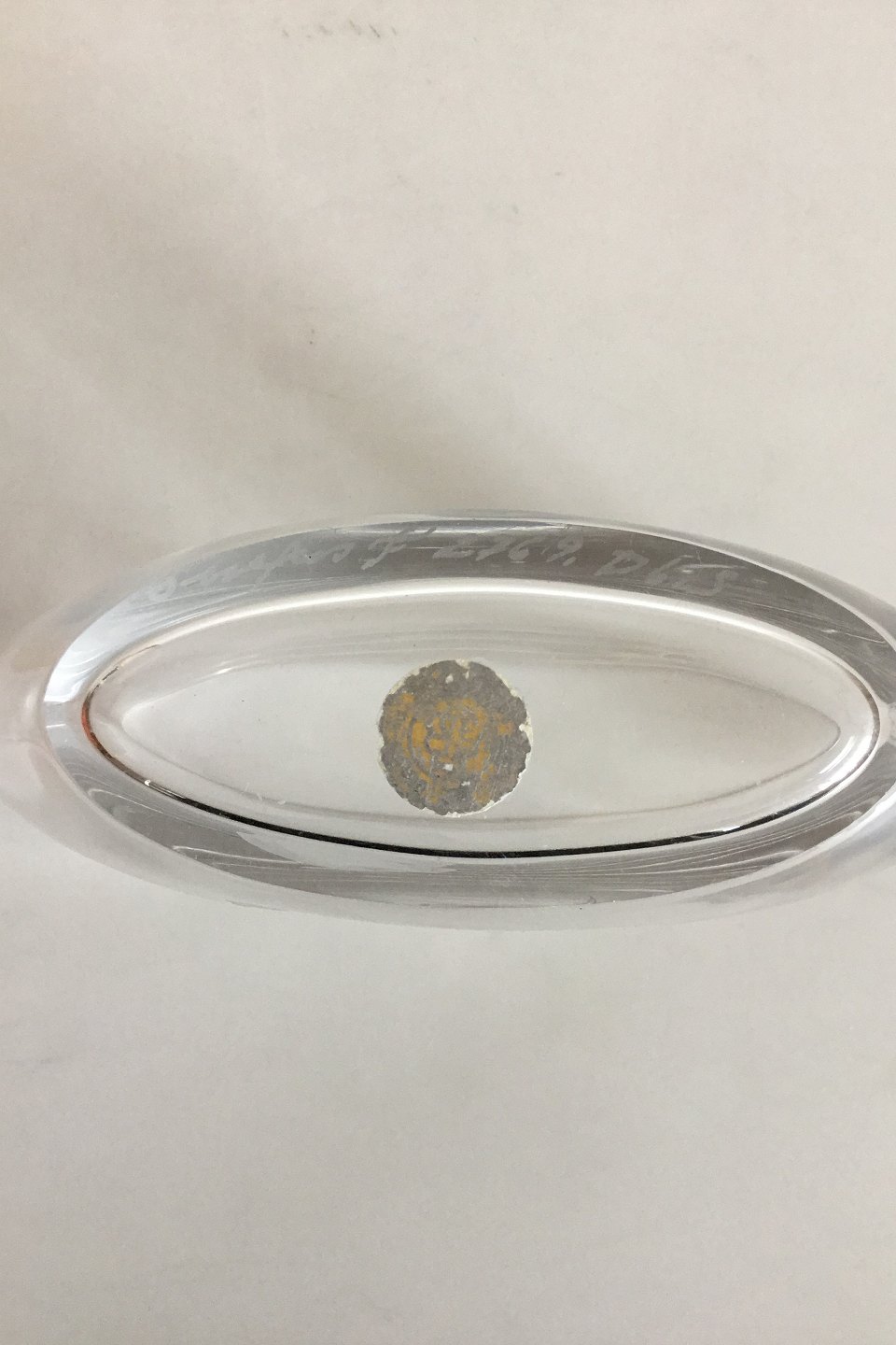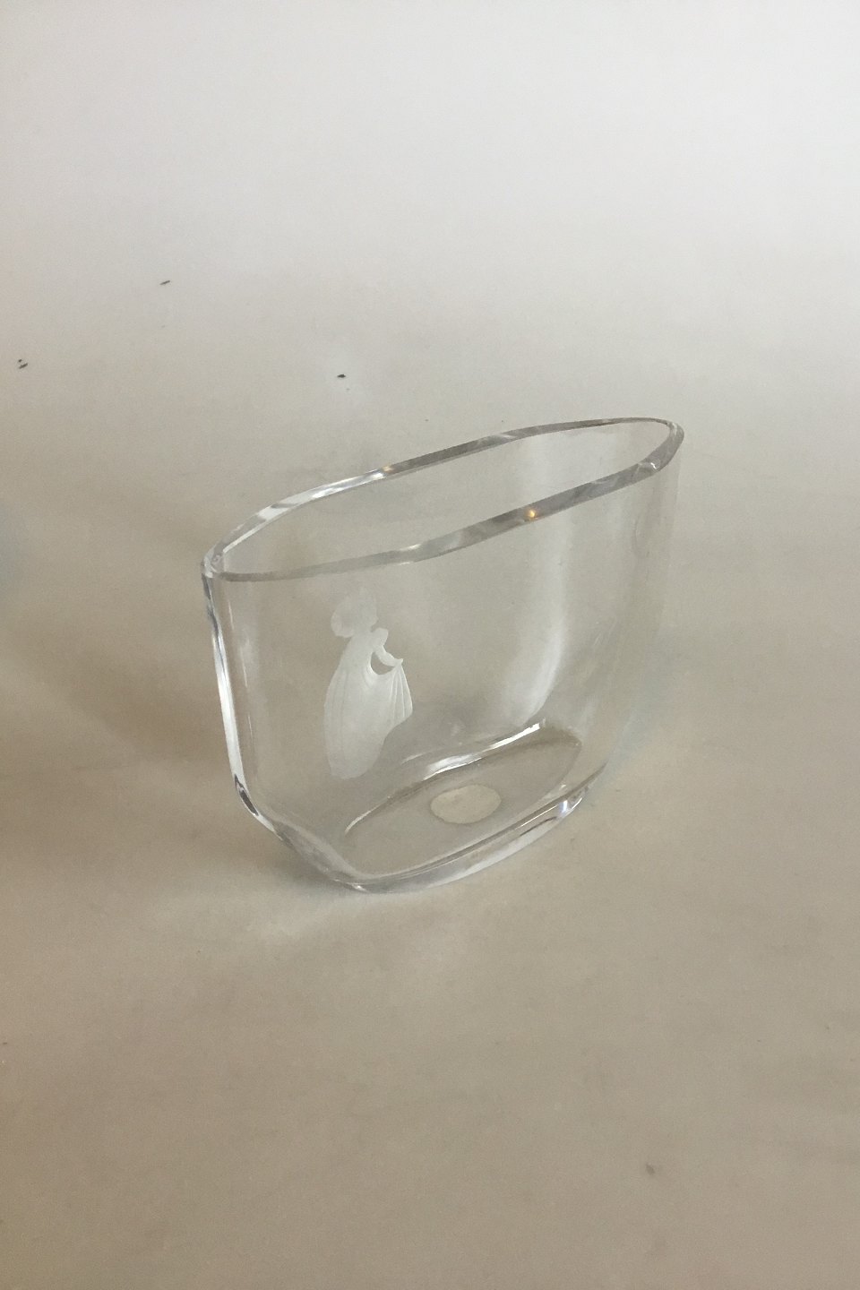 Orrefors oval vas eNo 2769. Pige der kigger på månen. Ca. 1950. Måler 16.5 cm x 10.5 cm x 5.5 cm