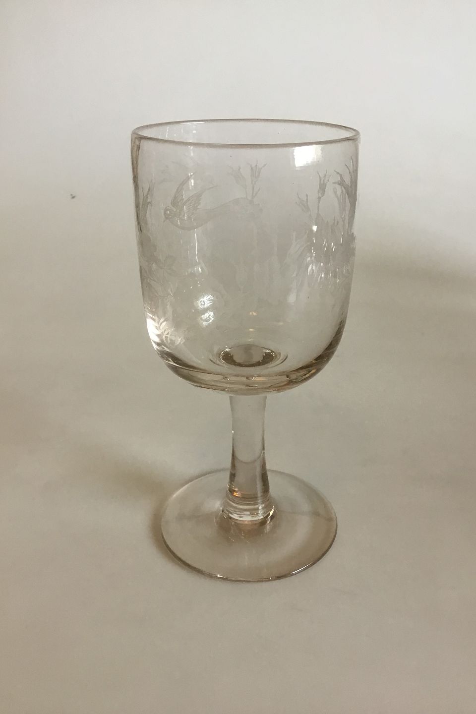 Kastrup Erindringsglas med svaler, Ætsning. Uden indgravering. Måler ca. 15,9 cm