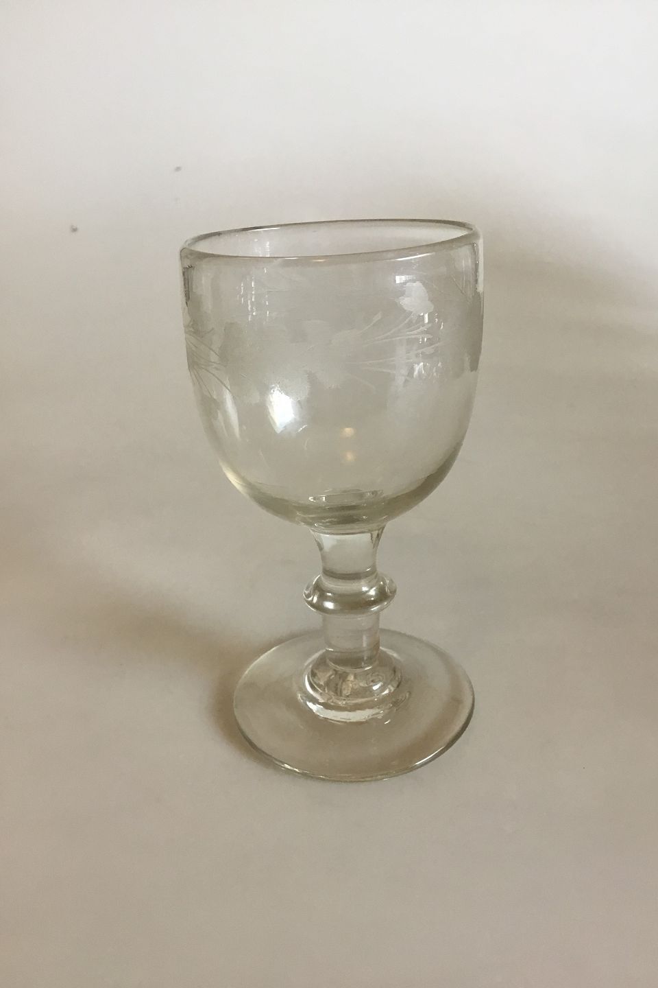 Conradsminde Wine Glass with Oak Leaves. From approx. 1840. Measures 11.7 cm / 4 39/64 in.