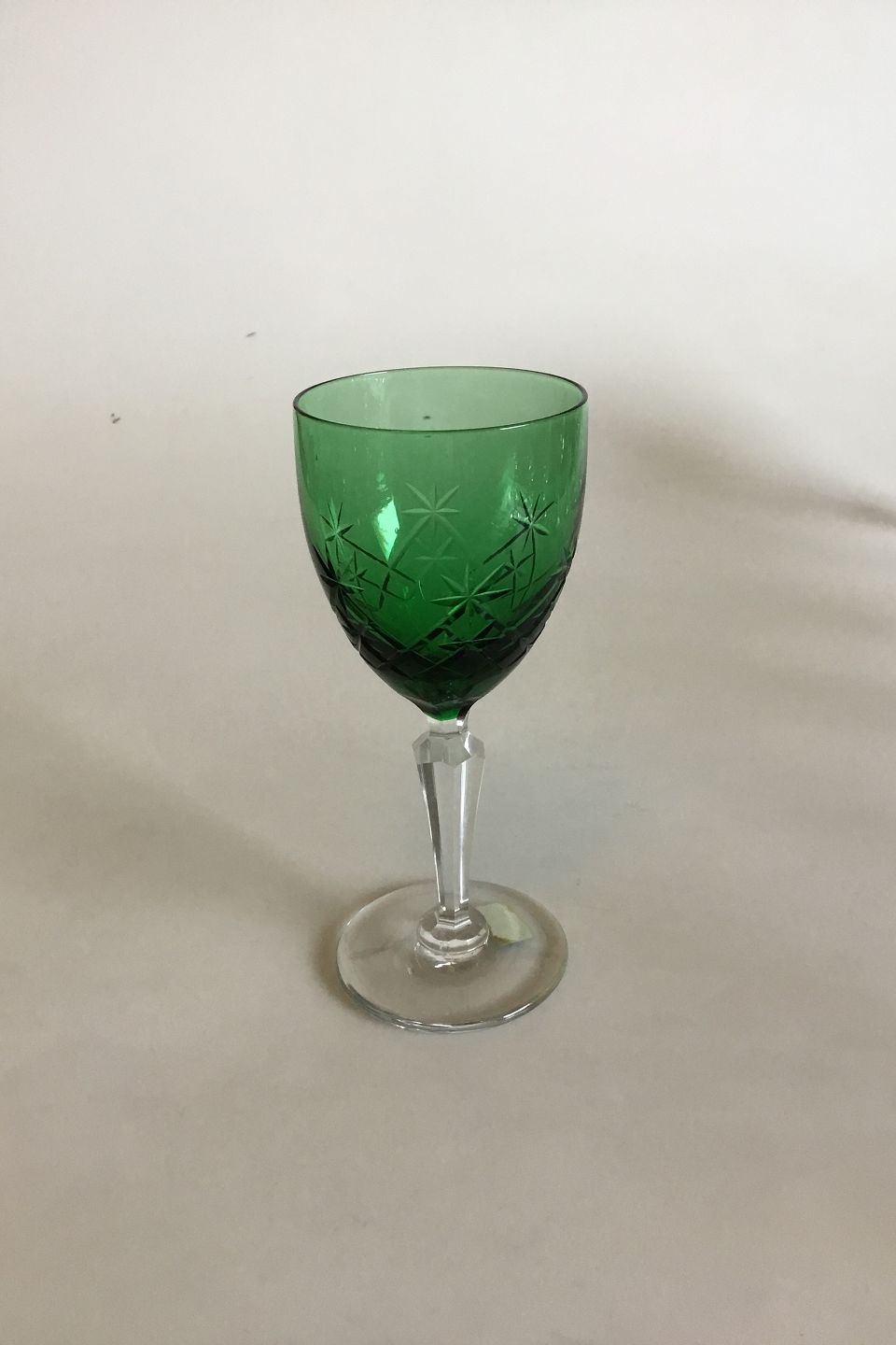 Dansk Glas Hvidvinsglas med grøn cuppa og slibning. Måler 14,8 cm