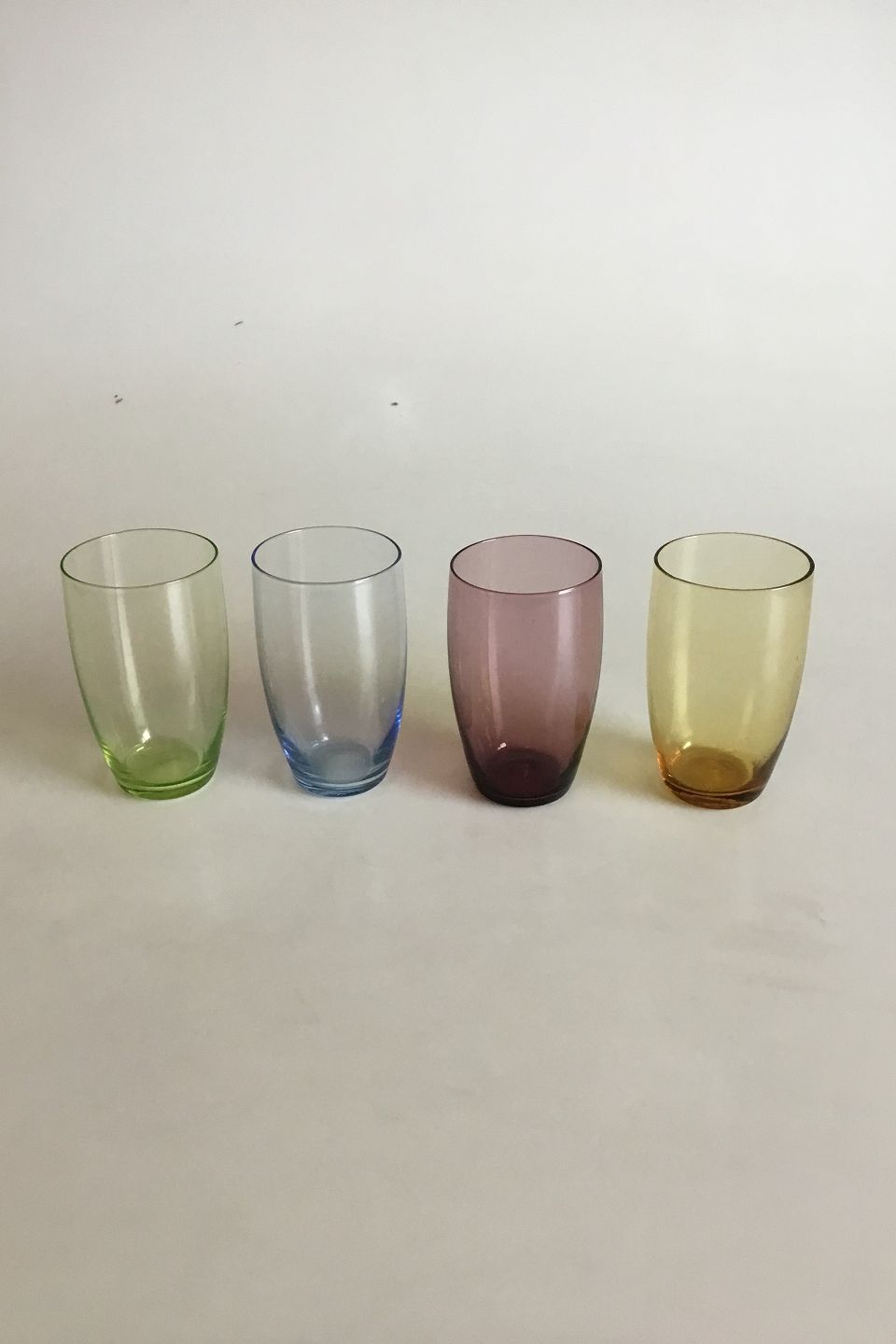 Holmegaard/Kastrup 4 Soda Glasses in Blue, Green, Yellow and Purple.