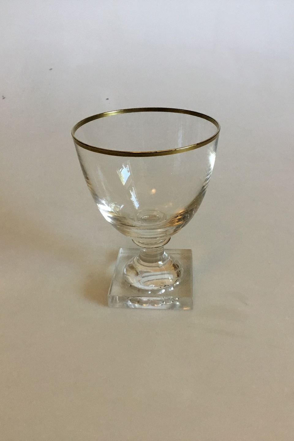 Gorm den Gamle Rødvinsglas med guldkant. Måler 12,6 cm