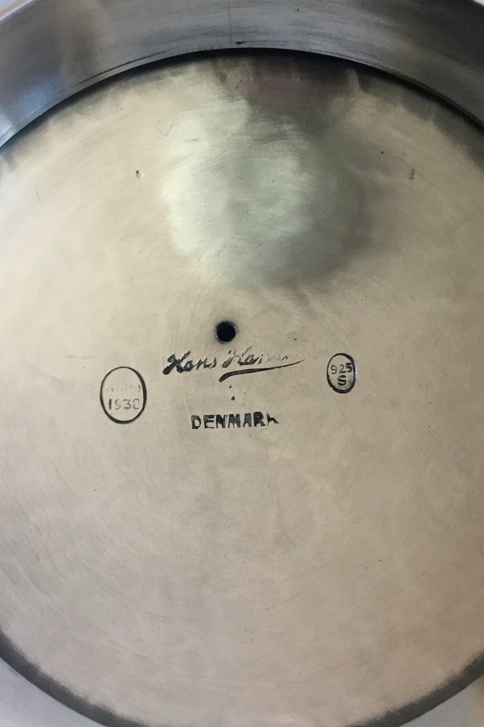 Hans Hansen Sterling Silver Coffee Set. Consists of Coffee Pot, Creamer and Sugar Bowl. Handle made of wood. Coffee Pot 20.5 cm / 8 5/64 in., weighs 619 g / 21.85 oz. Creamer 11.5 cm / 4 17/32 in., weighs 222 g / 7.85 oz. Sugar Bowl 9 cm / 3 35/64 in., weighs 400 g / 14.10 oz.