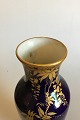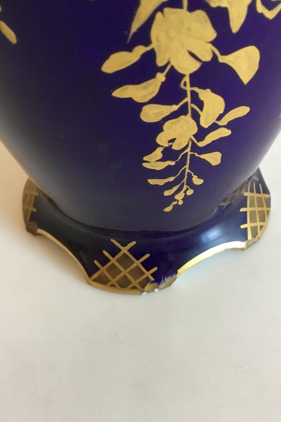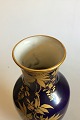 Royal Copenhagen A Pair of Art Nouveau Vases. Dark Blue Glace with gold decoration of Laburnum. Measures 42 cm / 16 17/32 in. Both have chips at bottom.