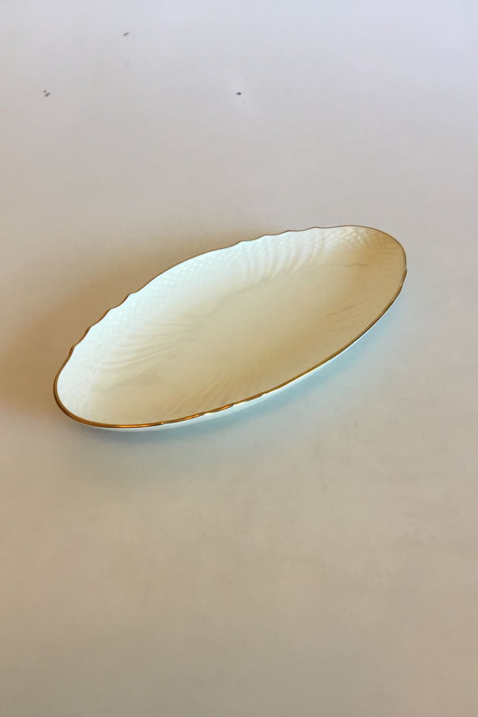 Royal Copenhagen Creme Curved with Gold (Pattern 1235) Small Oval Dish No 1689. Measures 24 cm / 9 29/64 in x 12.5 cm / 4 59/64 in.