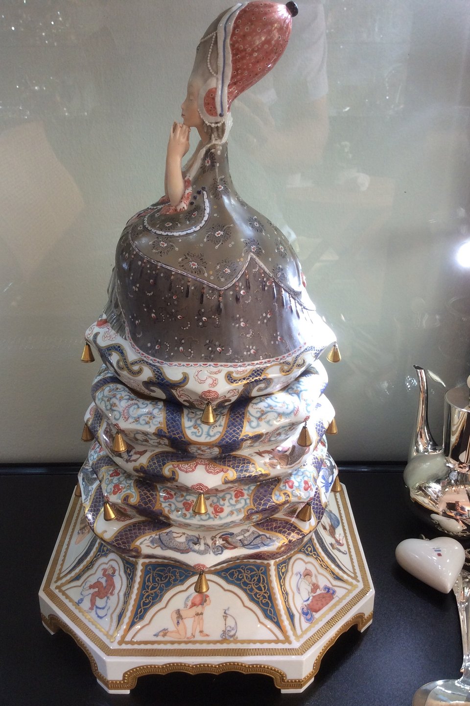 The Princess is 45 cm high; it has been painted with more than 80 colors. The Princess is a bonbonniere, which means that the top can be taken off.