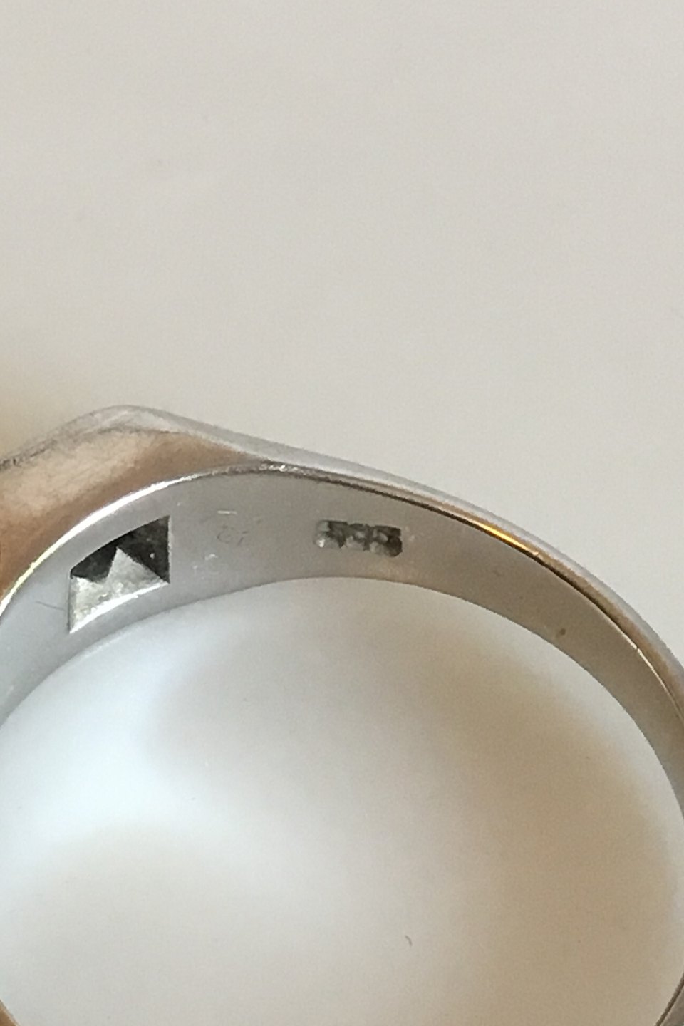 Ring in 14K White Gold with Brilliant. Ring size 59 / US 9 1/4. Weighs 4.43 g / 0.16 oz. Stamped Br.J 585 (Bræmer-Jensen)