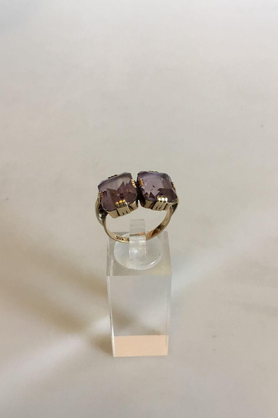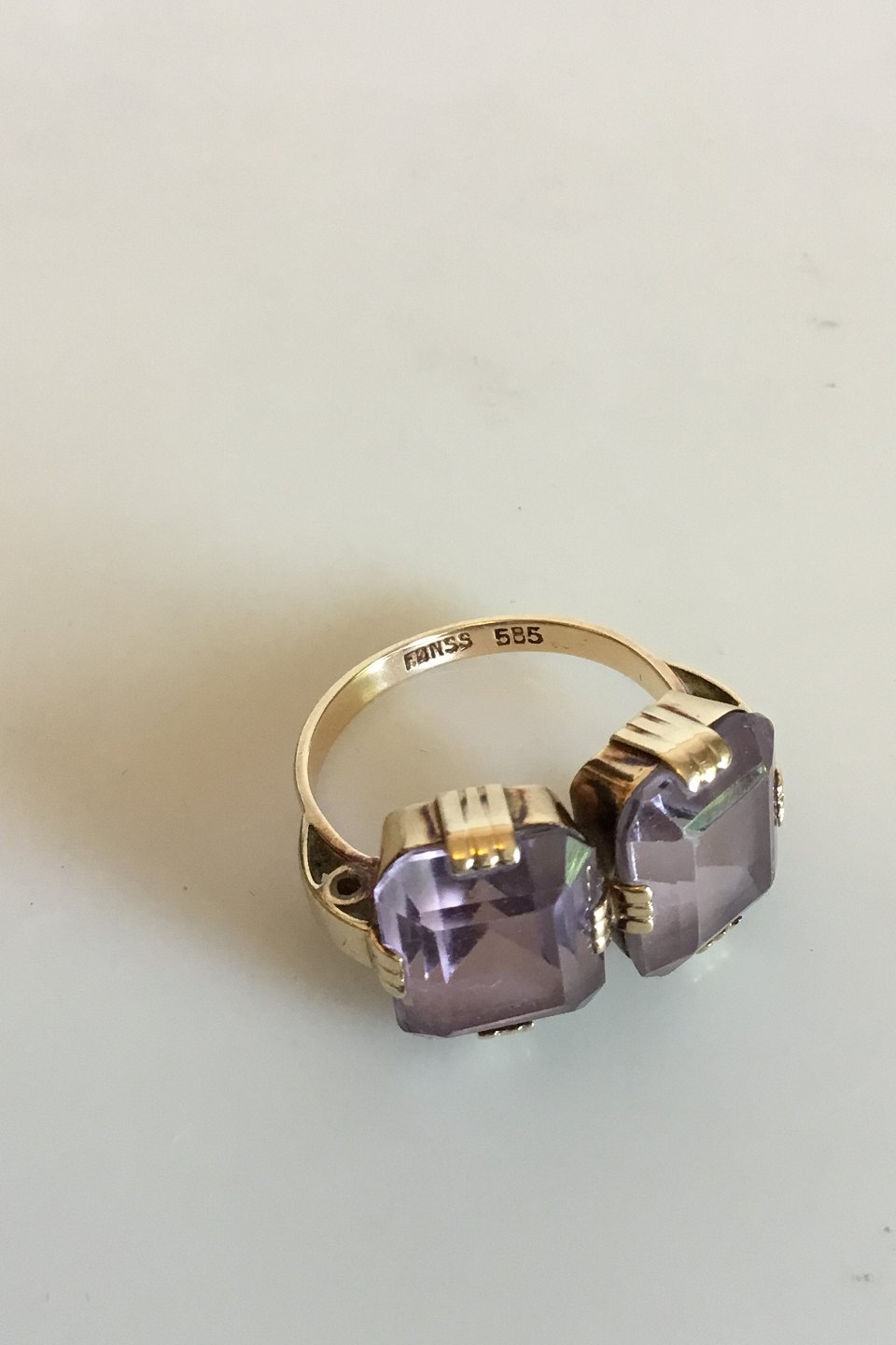 Gold ring with two Amethysts. 14 K. Ring Size 54 / 7 1/4. Weighs 6.65 g / 0.24. Stamped 585 Fønss (Svend Fønss)
