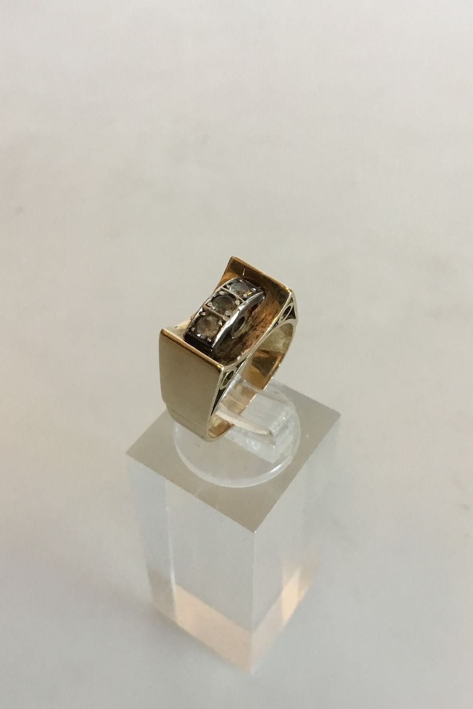 Gold Ring with three Brilliants. 14 K. Ring Size 48 / 5. Weighs 5.41 g / 0.19 oz.