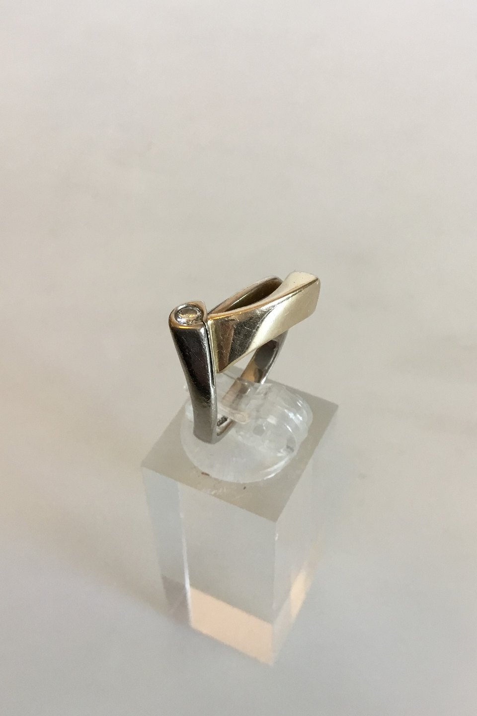 Ring in 14K Gold and White Gold with Brilliant. Ring size 51 / US 6. Weighs 6.07 g / 0.21 oz. Stamped 585