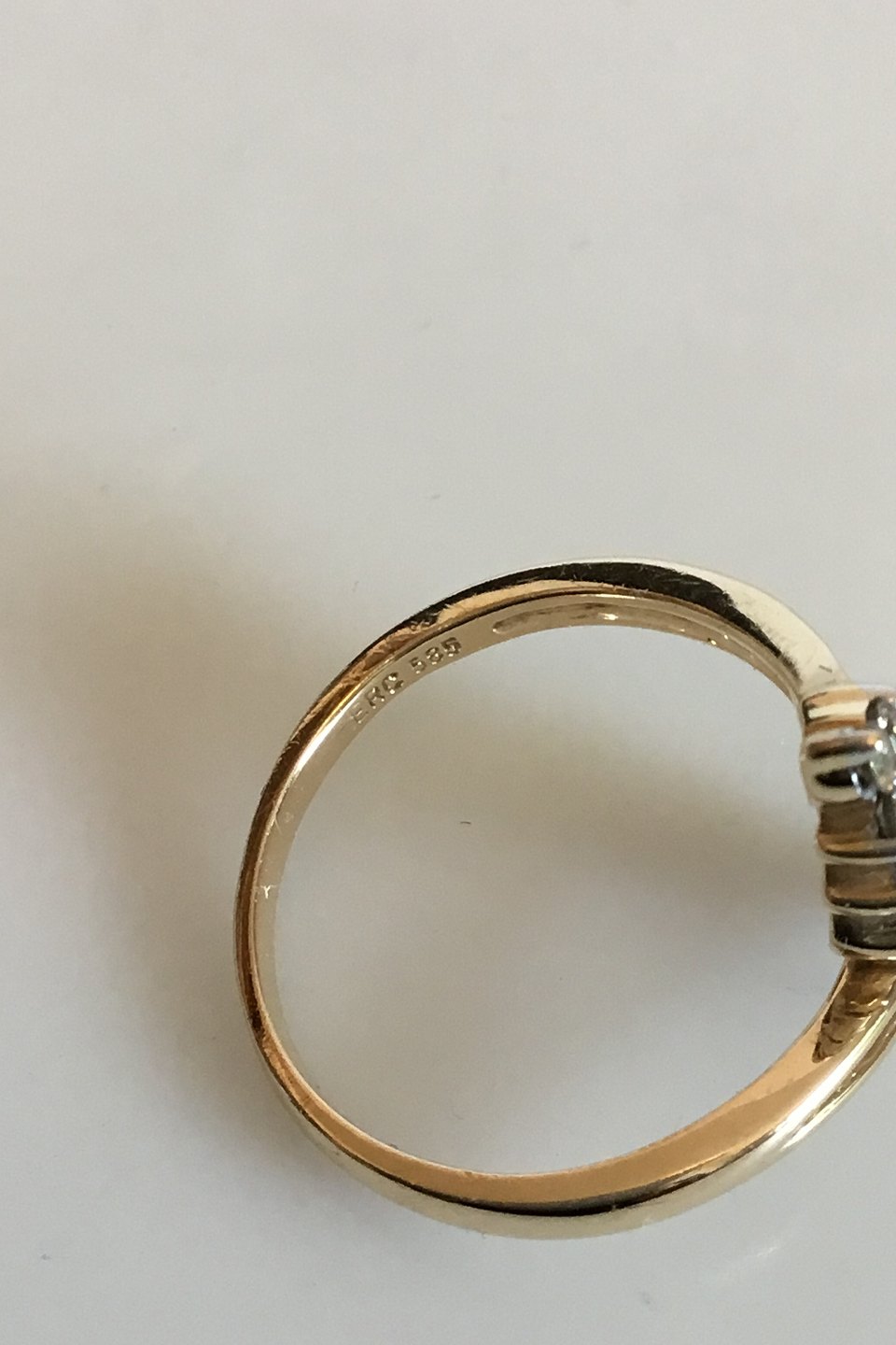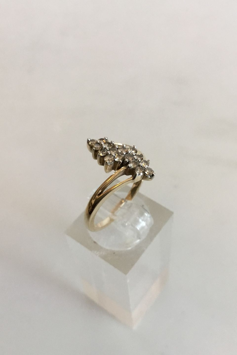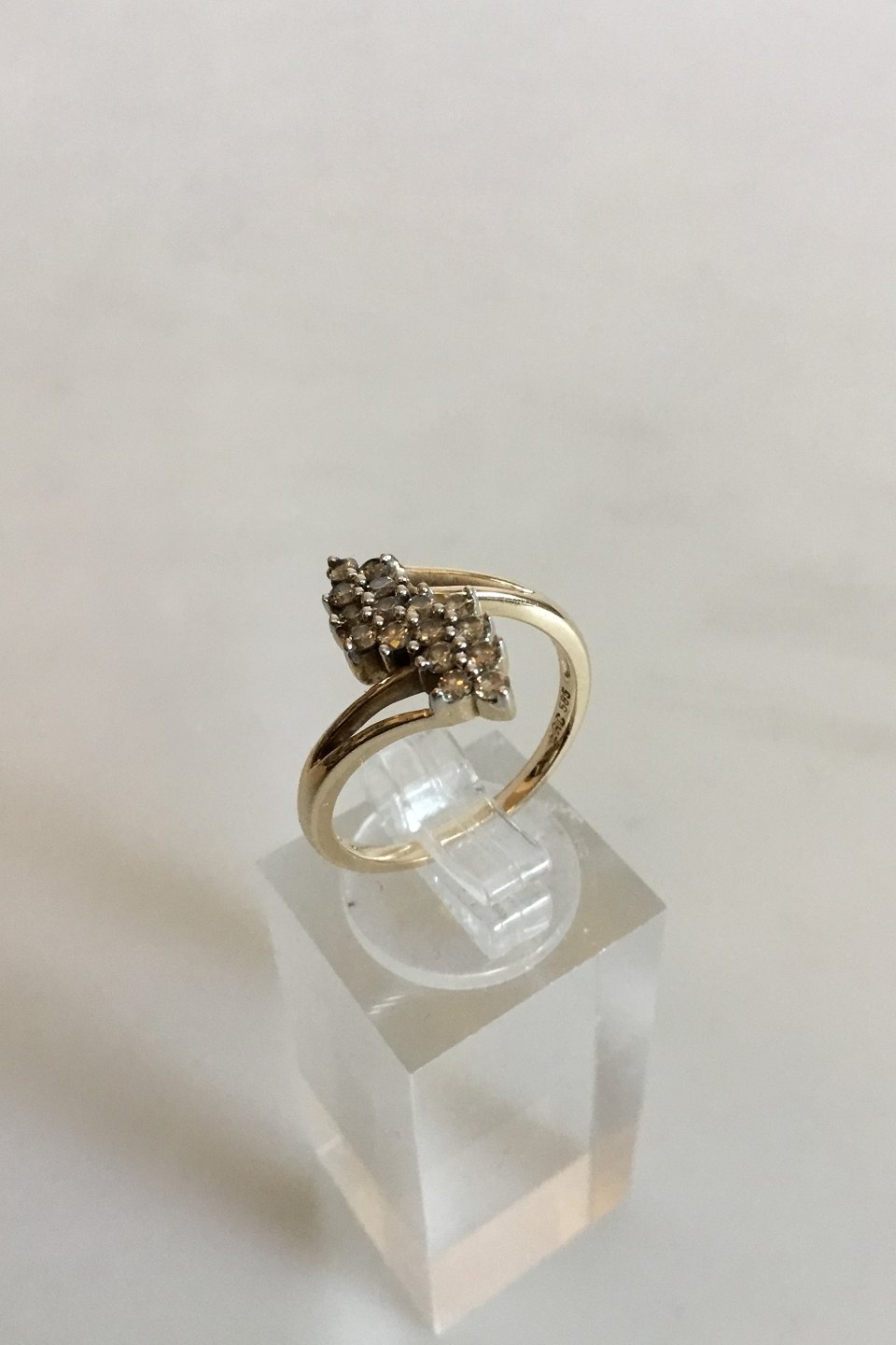 Gold ring in 14K with 16 small stones. Ring size 54 / US 7 1/4. Weighs 3.08 g / 0.11 oz. Stamped ERC 585 (Elisabeth Rosenberg Christensen)