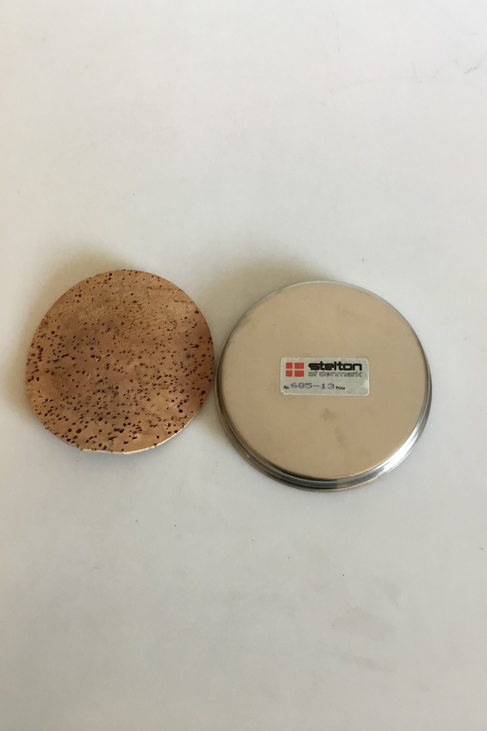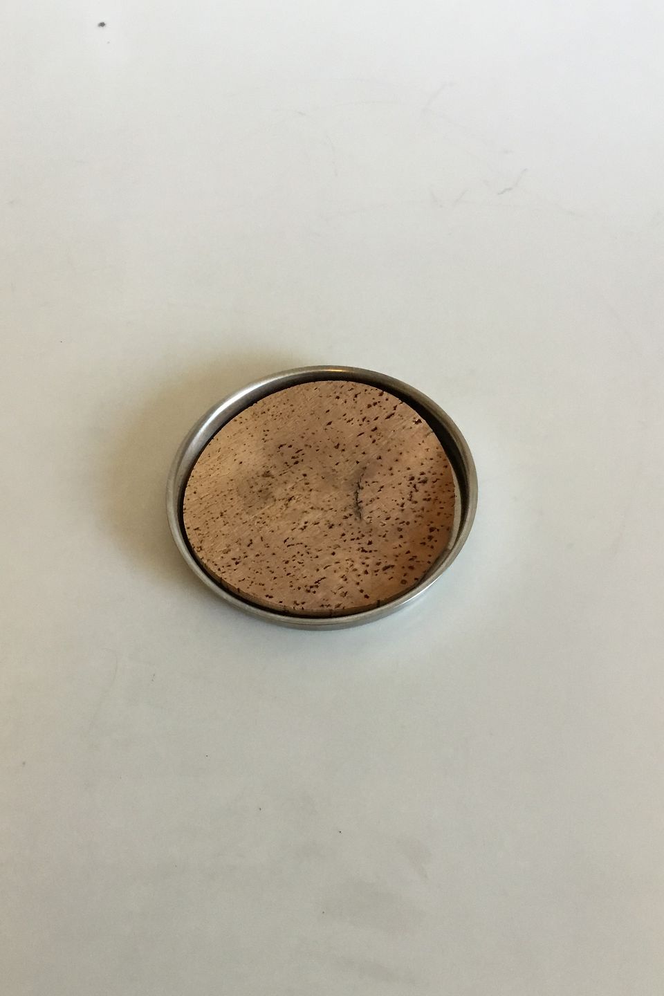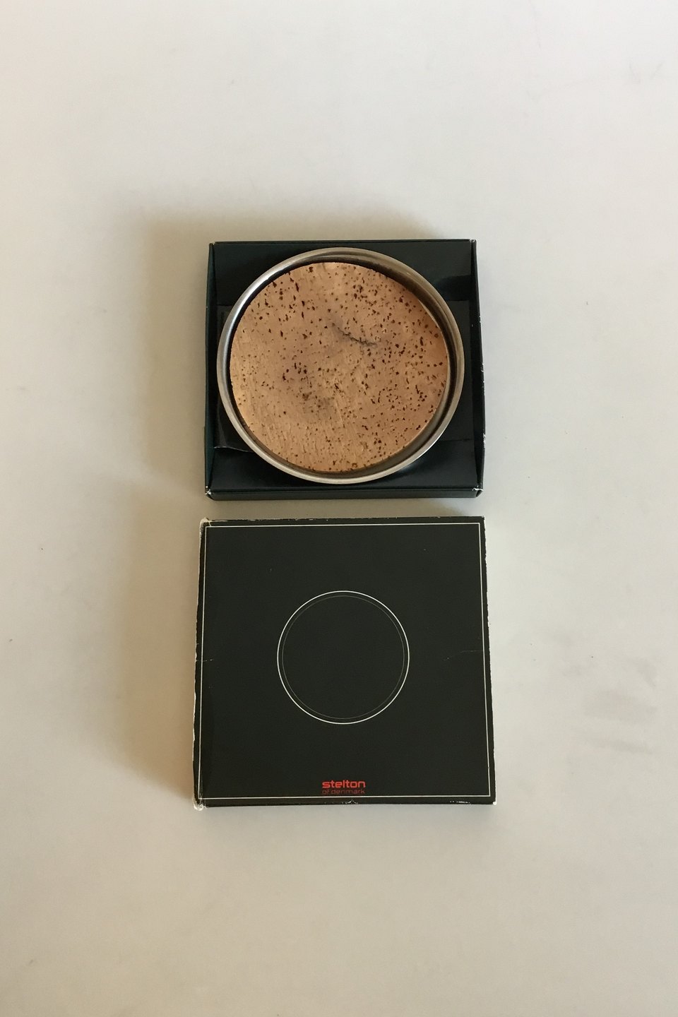 Stelton Stainless Steel Bottle Coaster with Cork Pad. Measures 13 cm / 5 1/8 in. dia. In Box. Cork Seized.