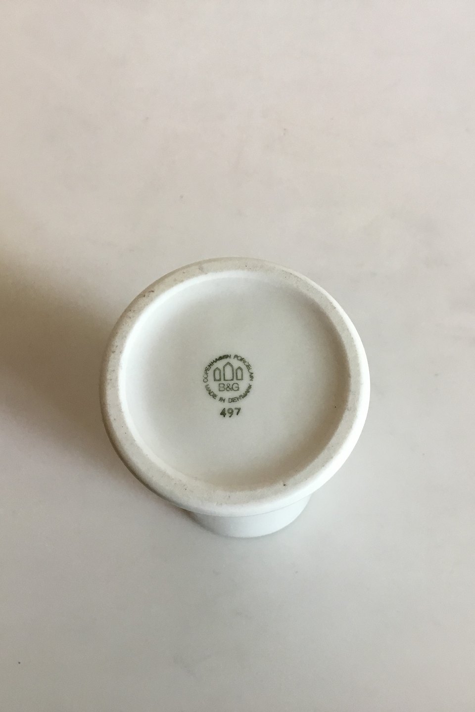 Bing & Grondahl Peber Hvid (Pepper White) Spice Jar No 497 from the Apothecary Collection designed by Bo Bonfils in the 1970s. 11 cm H (4 21/64")