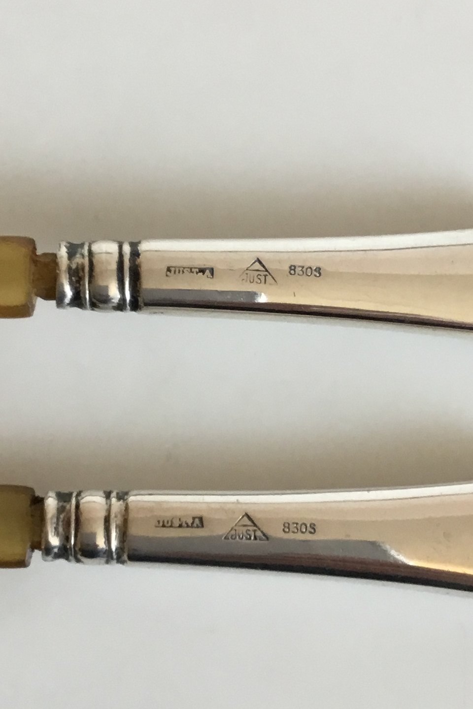 Just Andersen Salatsæt i Sølv og Horn. Måler 16,5 cm