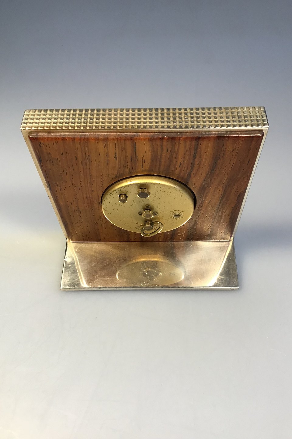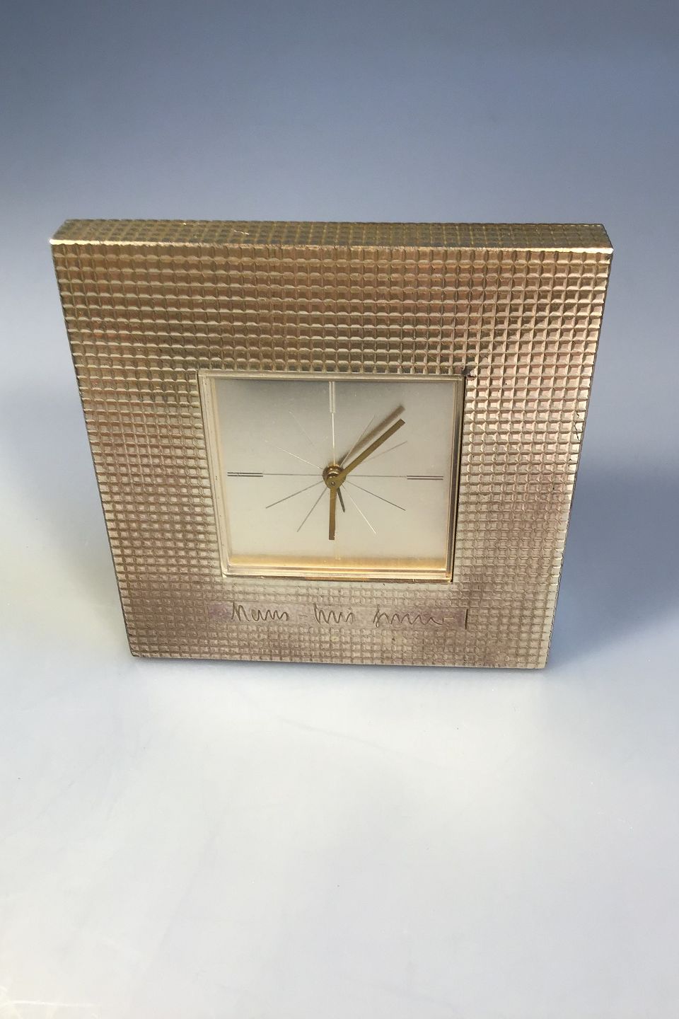 Mantelpiece clock/Travel clock in sterling silver. Honeycombed finish, measurements 11.5 x 11.5 cm(4.5 x 4.5 inches), alarm clock function. Danam do not guarantee functionality