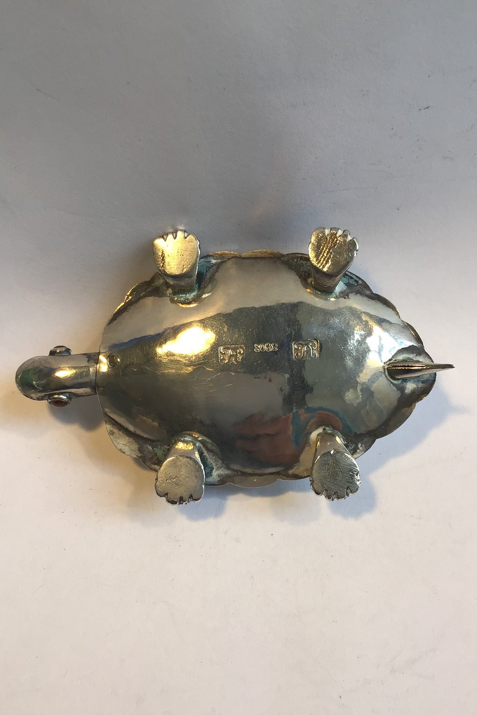 Turtle of silver with a moving head. Partially pseudo-hallmarked. L. 9.5 cm. 20th century