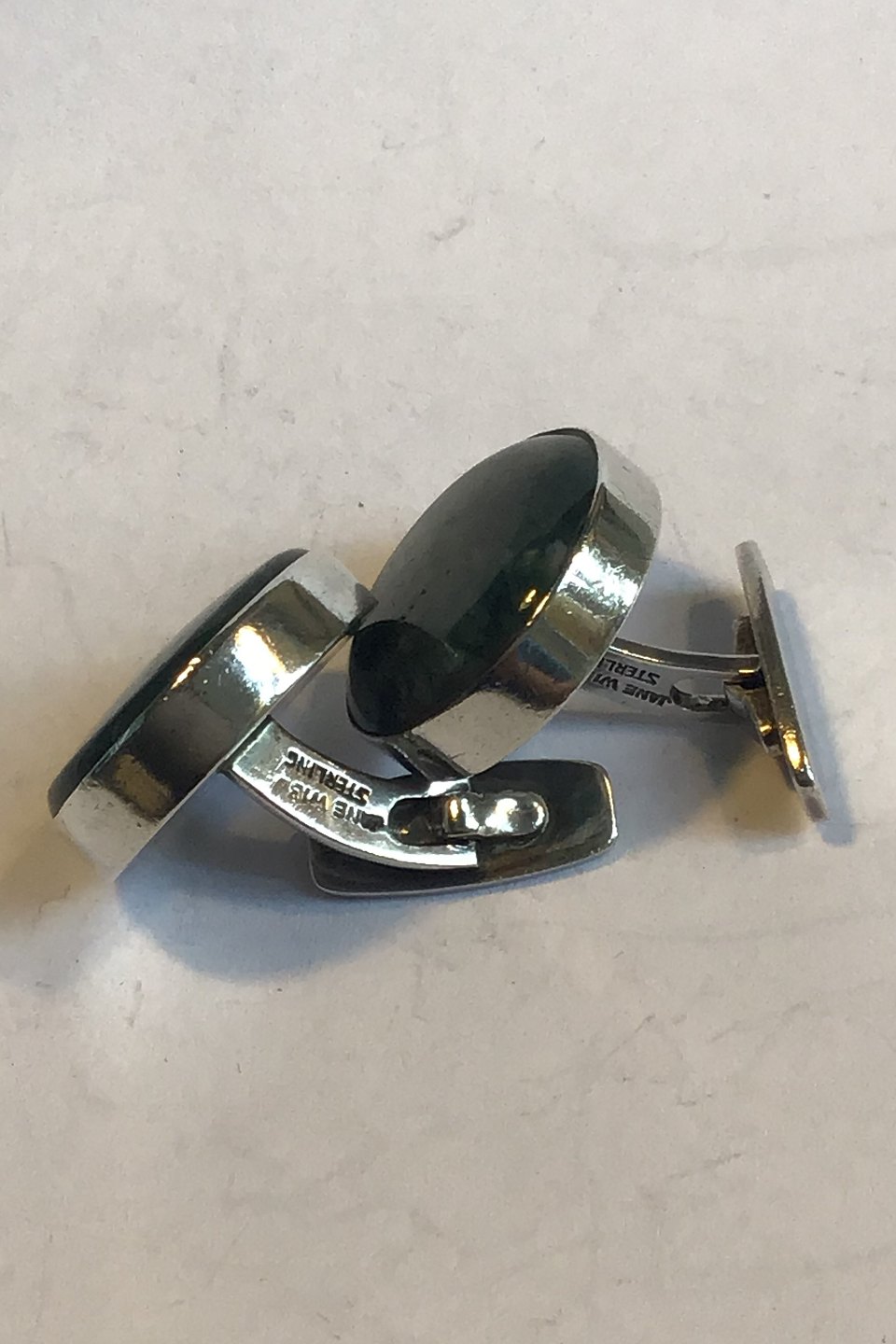 Jane Wiberg Sterling Silver and Moss Agat Cufflinks No 203 Diameter 2.3 cm/0.9" Weight 23.6 gr/0.83 oz.