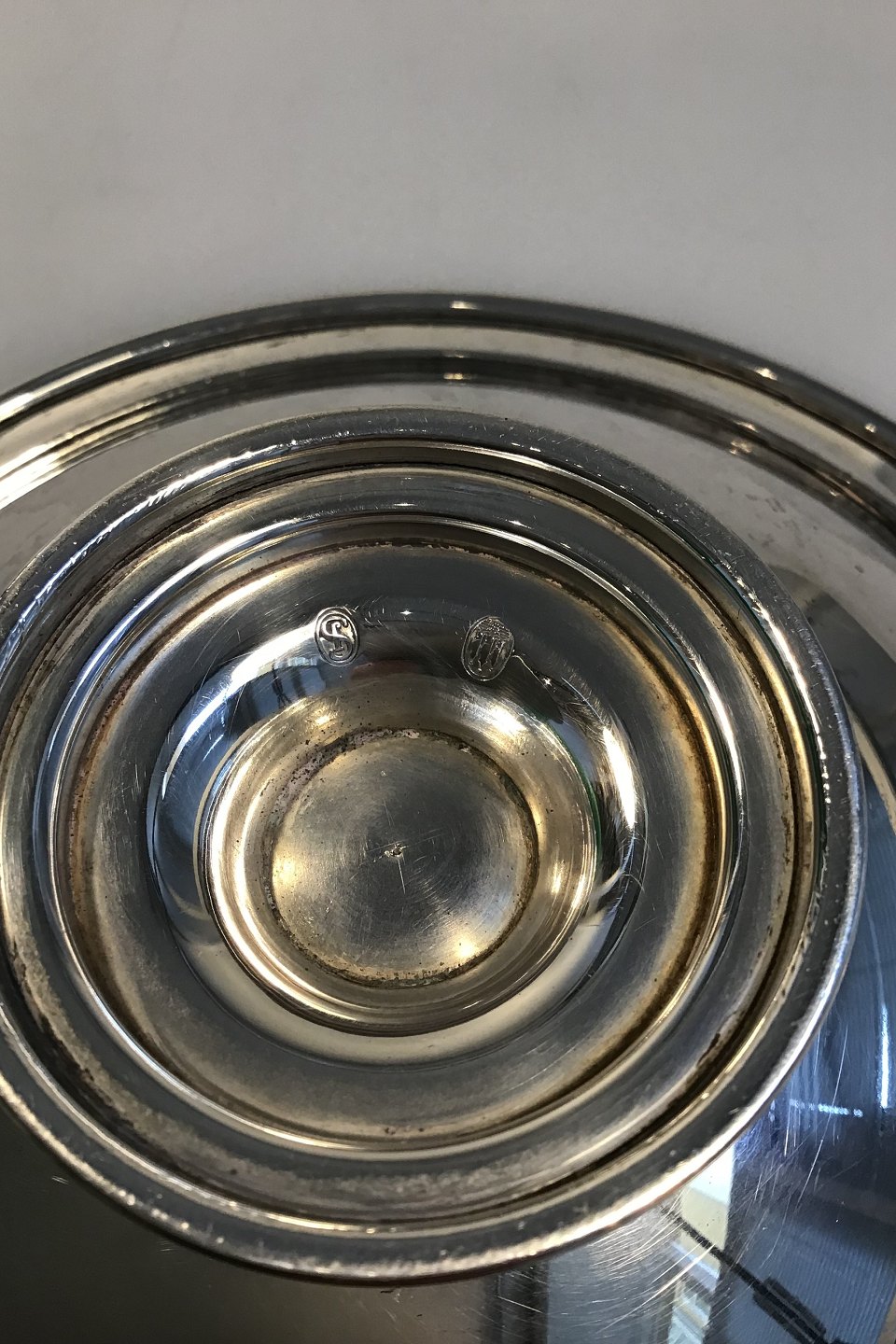 Danish Silver(830) dish on stepped base H 4.5 cm/1.77" Diam 16 cm/6.29" Weight 177 gr/6.25 oz.