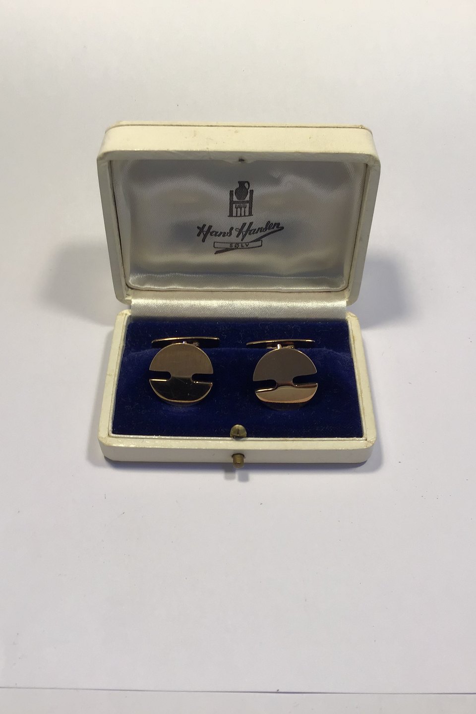 Hans Hansen 14K Gold Cuff Links No 612 Diam 2.0 cm/0.78" Combined weight 16.4 gr/0.58 oz. Original Hans Hansen box