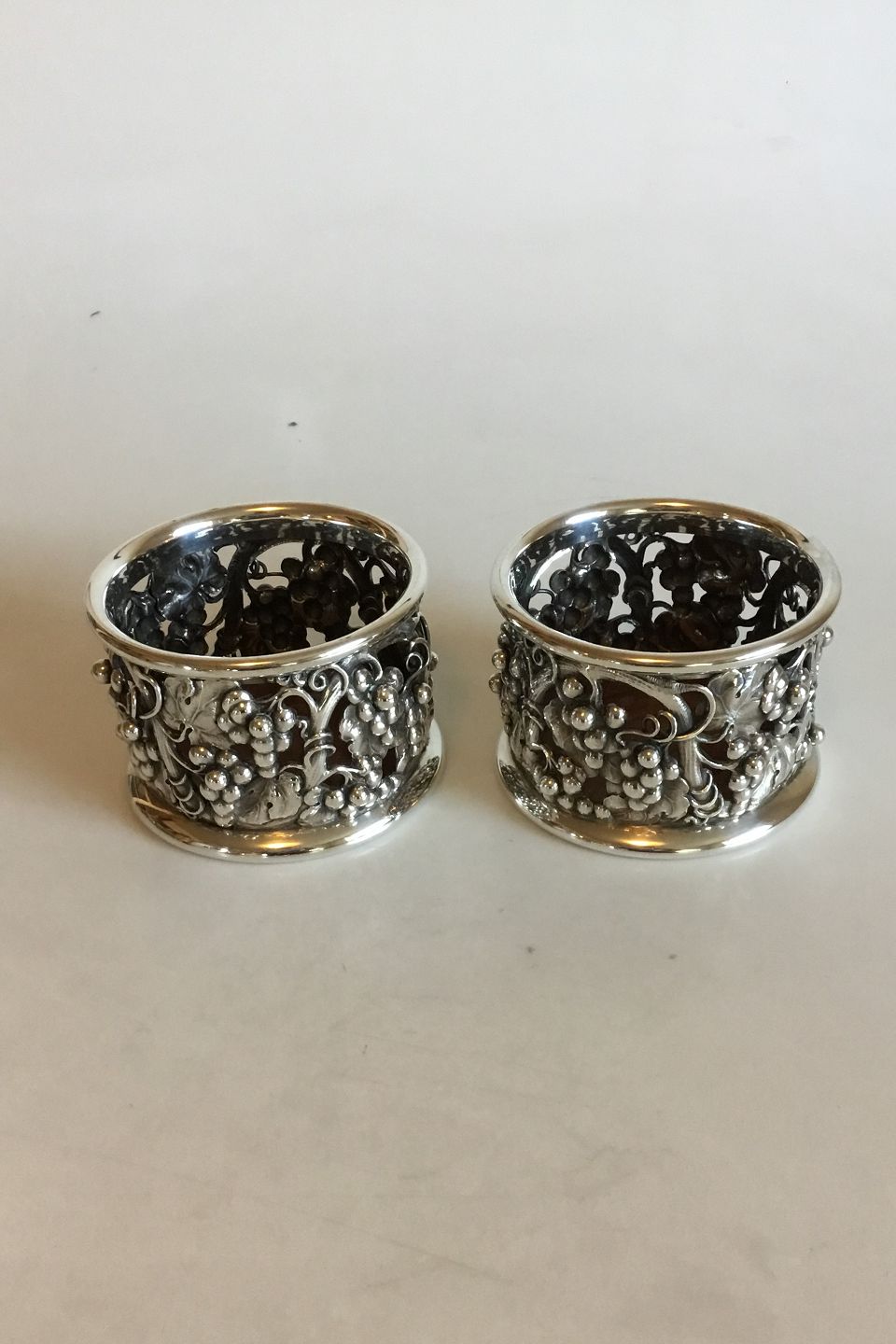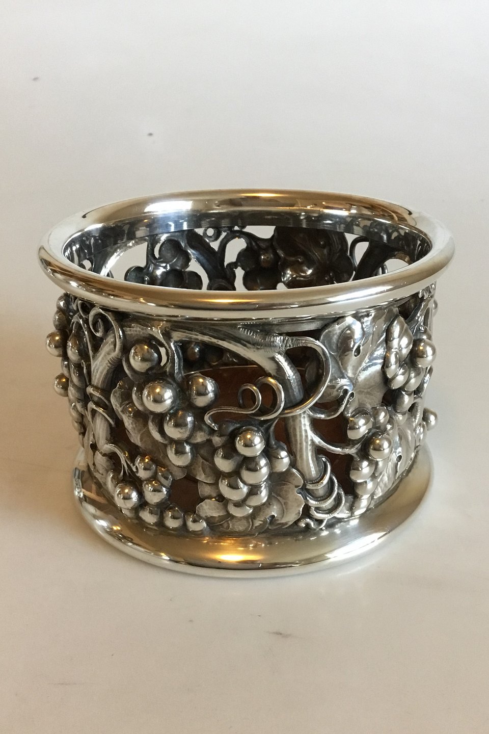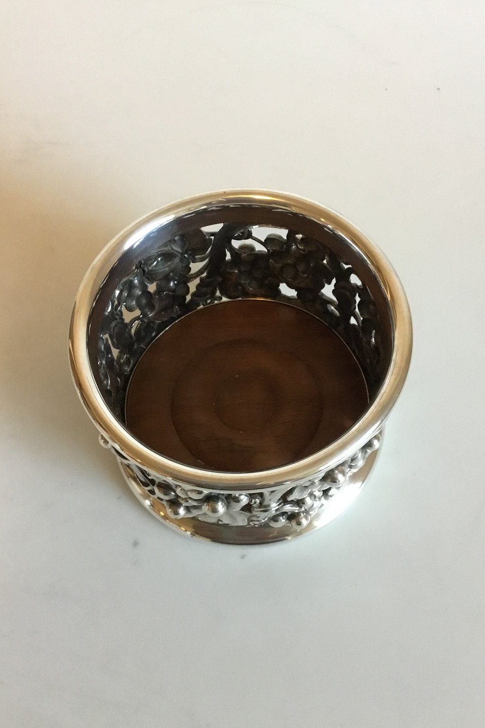 Evald Nielsen Silver A pair of Bottle Trays with wooden insert. From 1935. Measures 11.5 cm / 4 17/32 in. dia. x 7.8 cm / 3 5/64 in. Weighs together 615 g / 21.75 oz. without insert