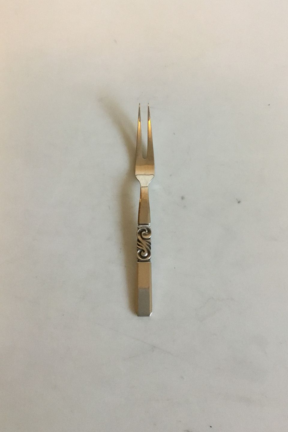 Georg Jensen Sterling Silver Scroll Cold Meat Fork No 74. Measures 16 cm / 5 29/32 in.