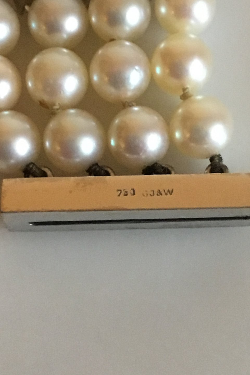 Georg Jensen & Wendel 14 K Hvidgulds armånd med perler og brillanter. Består af 108 perler og 32 brillanter. Måler 20 cm. Vejer 50,3 gram
