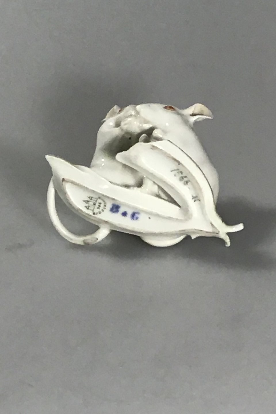 Bing & Grøndahl To Mus på ærtebælg No 1566 Tre bittesmå afslag H 7 cm B 9 cm