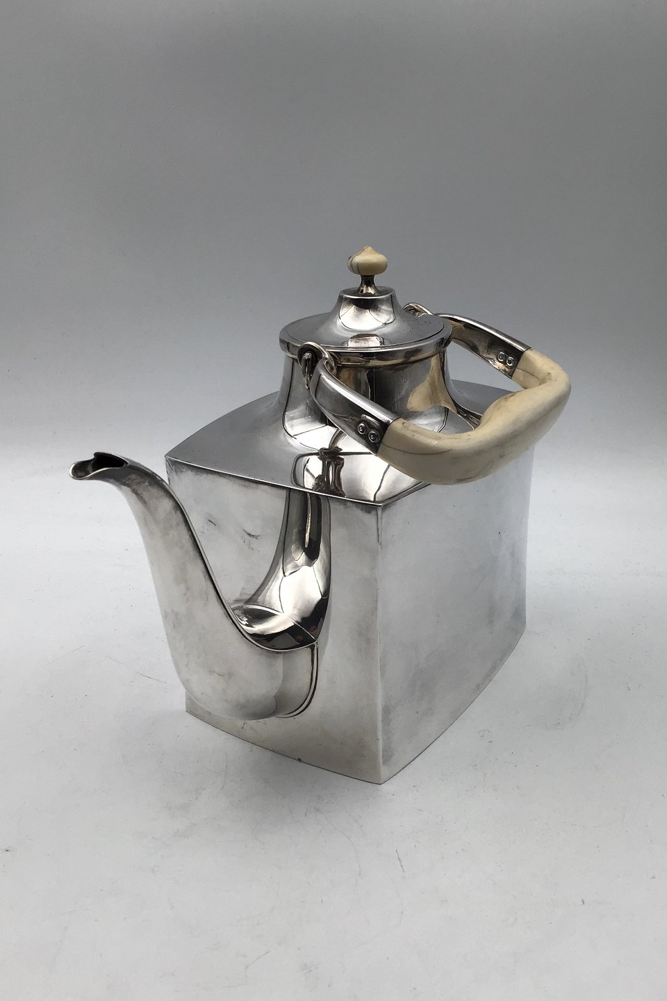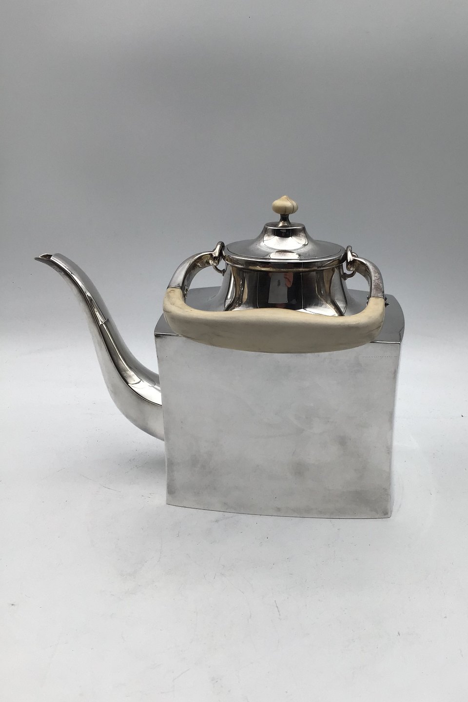 Hans Hansen Sterling Silver Tea Pot No 454. From 1963. Handles of Ivory. Measures 16 cm / 6 19/64 in. Weighs 860 g / 30.30 oz.