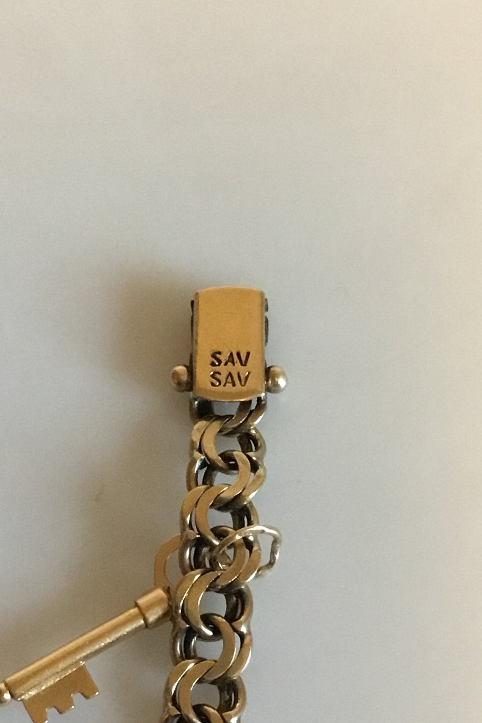 Bismarck Bracelet with Charms in 8K Gold. Measures 19 cm / 7 31/64 in. Weighs 13.3 g / 0.47 oz. Stamped SAV. Heart, Ball, Clogs, Anchor / Heart, Hat and Key.