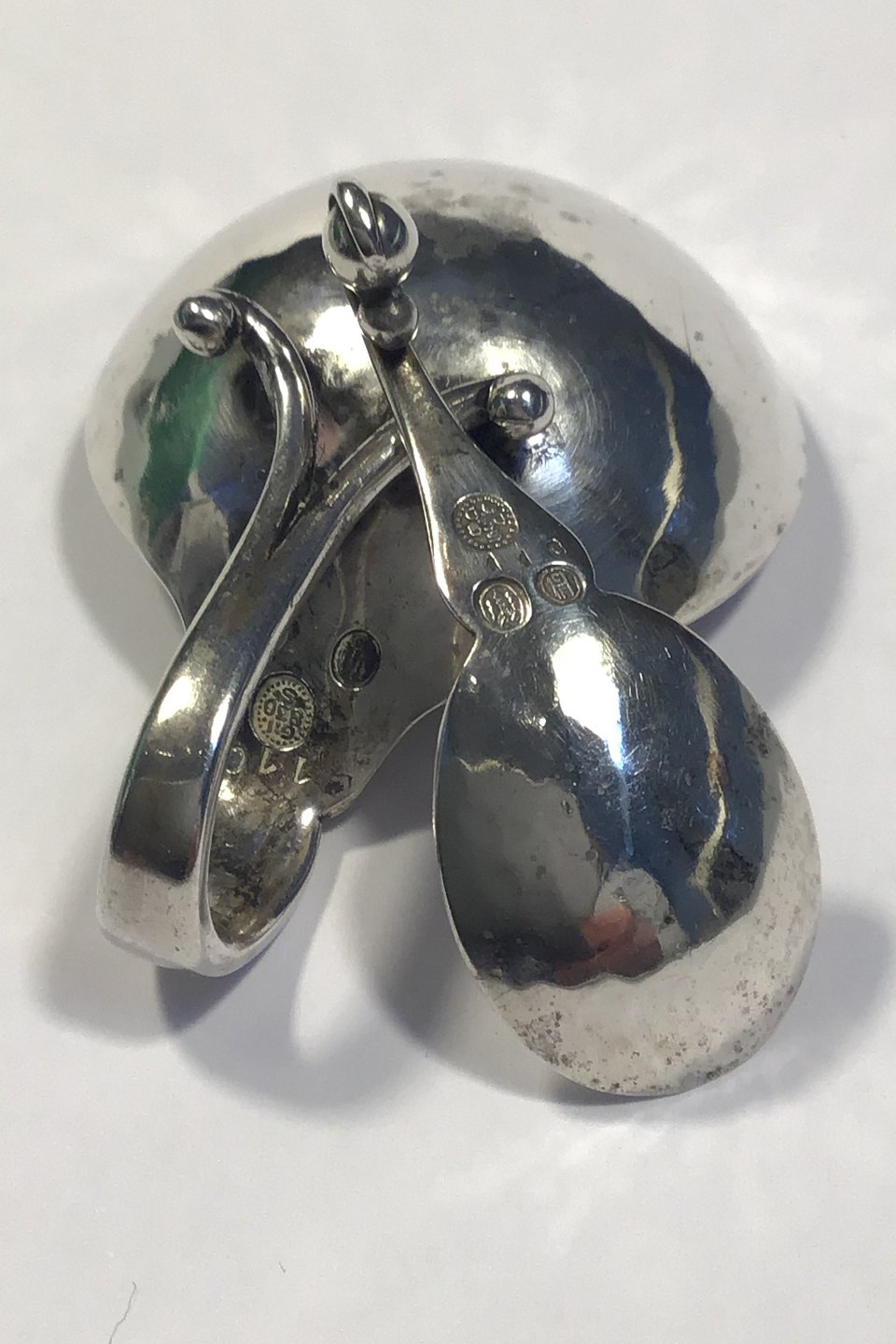 Georg Jensen Silver Salt Cellar with spoon No 110 Cellar 1930 3.5 cm x 5 cm/1.37" x 1.96" Spoon 1928 L 4 cm/1.57"