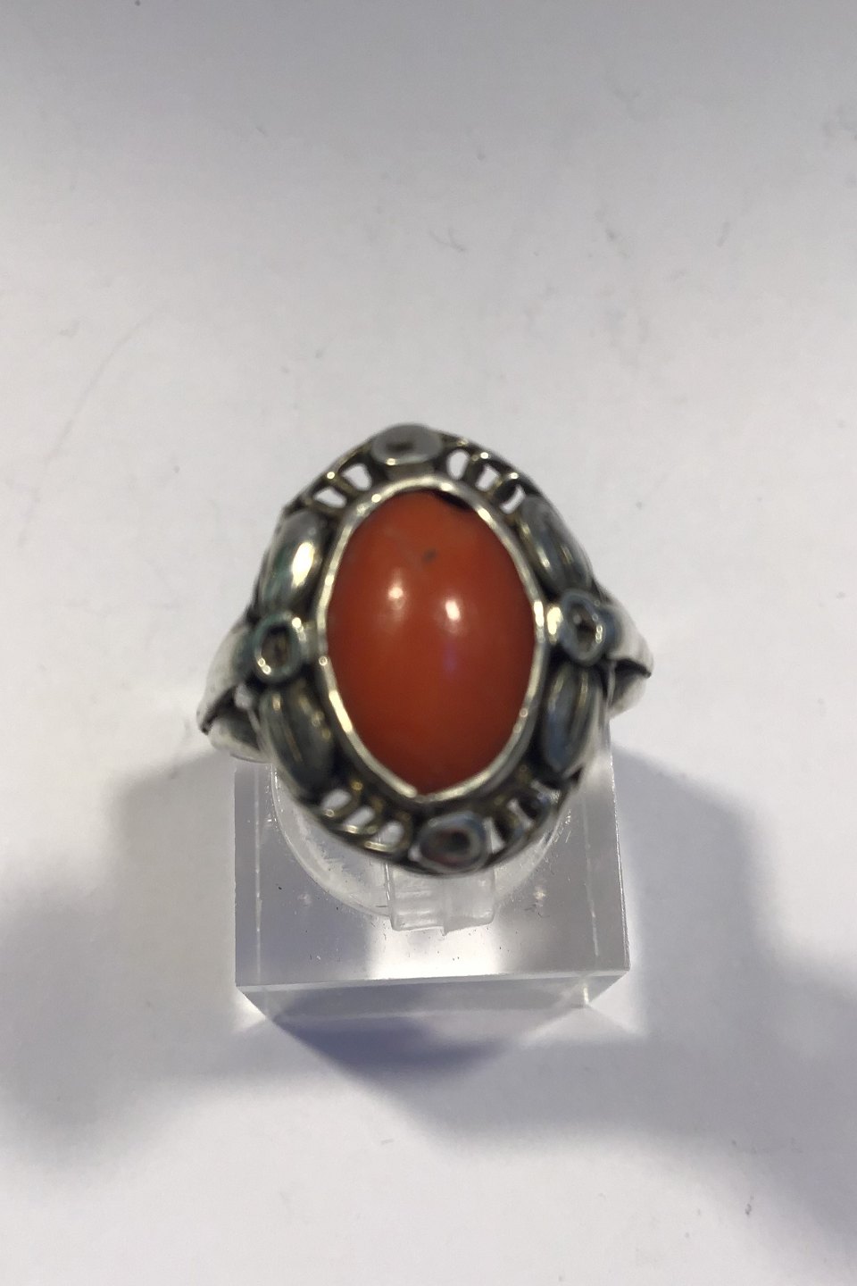 Georg Jensen Sterling Silver Ring with coral Size.53/US 6½ Weight 4.8 gr/0.17 oz
