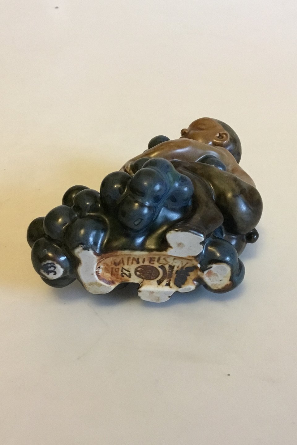 Bing & Grøndahl Figurine by Kai Nielsen "Little Bacchus with Grapes" No 4027 from The Grape Harvest Series. Designed in approx. 1915. Measures 11 cm / 4 21/64 in.