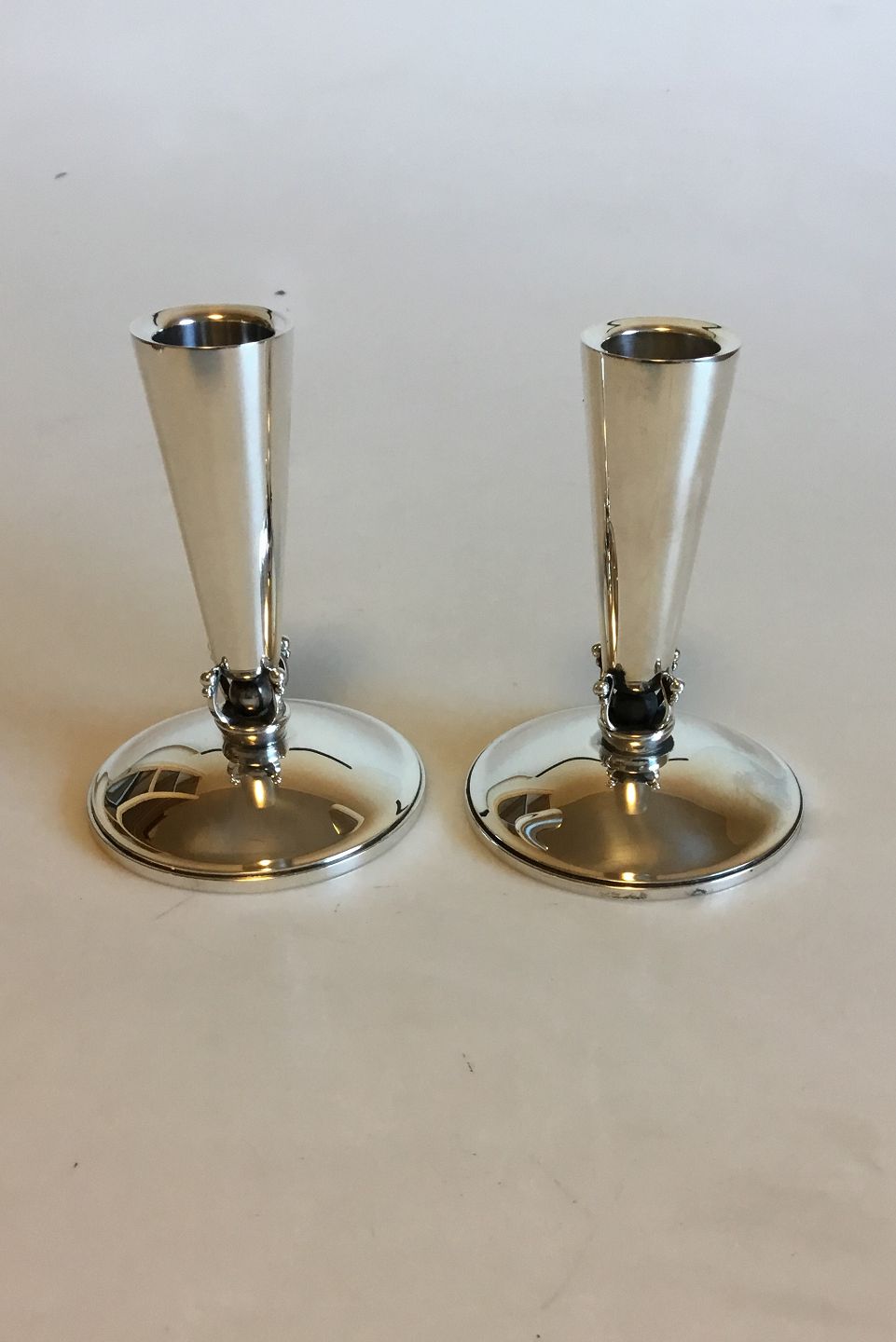 Evald Nielsen Sterling Silver A Pair of Candleholders. Measures 11.4 cm / 4 31/64 in. Weighs 263 g / 9.30 oz.