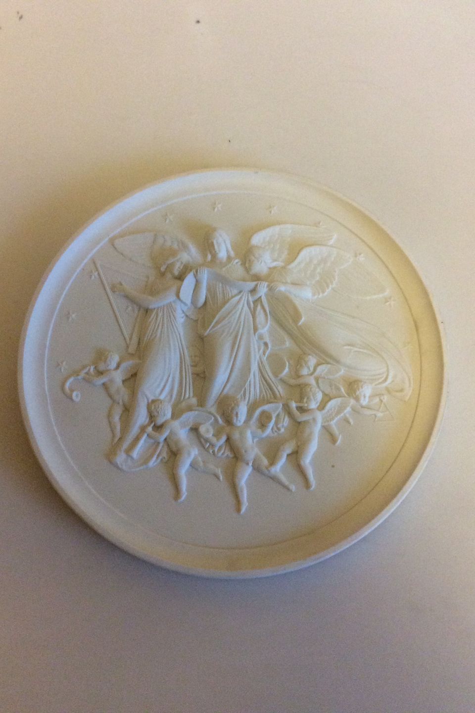Bertel Thorvaldsen: Giant Royal Copenhagen Bisque Plate "Christmas Joy in Heaven" No 111. Copy from 1843 by N. G. Henriksen after Thorvaldsens original from Rom 1836. Early factory marks on the back.