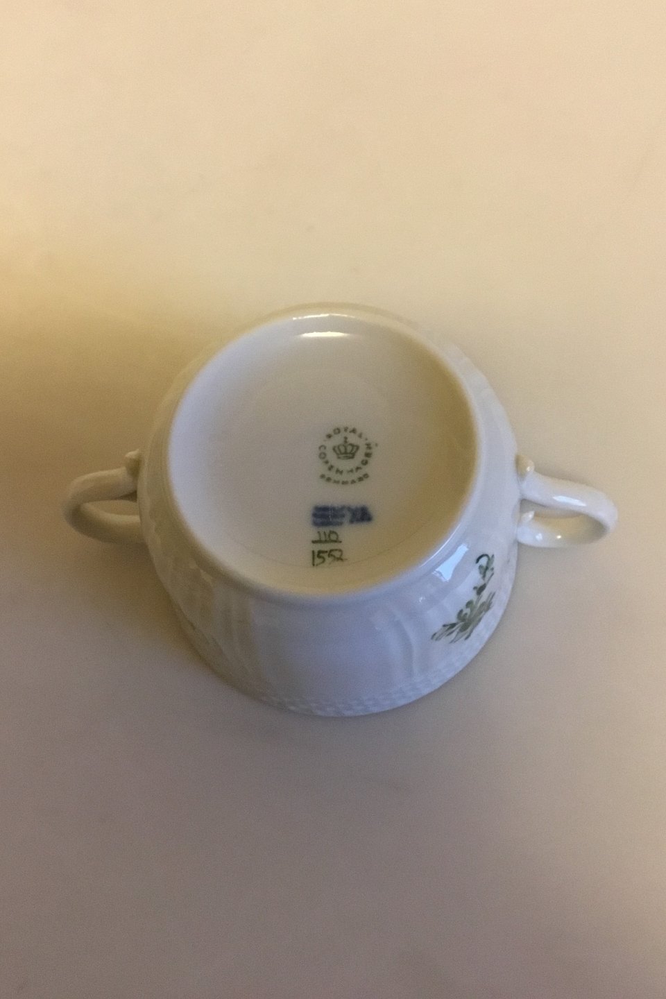 Royal Copenhagen Green Flower Curved Bouillon Cup No 1552. Measures 8.5 cm / 3 11/32 in. dia.