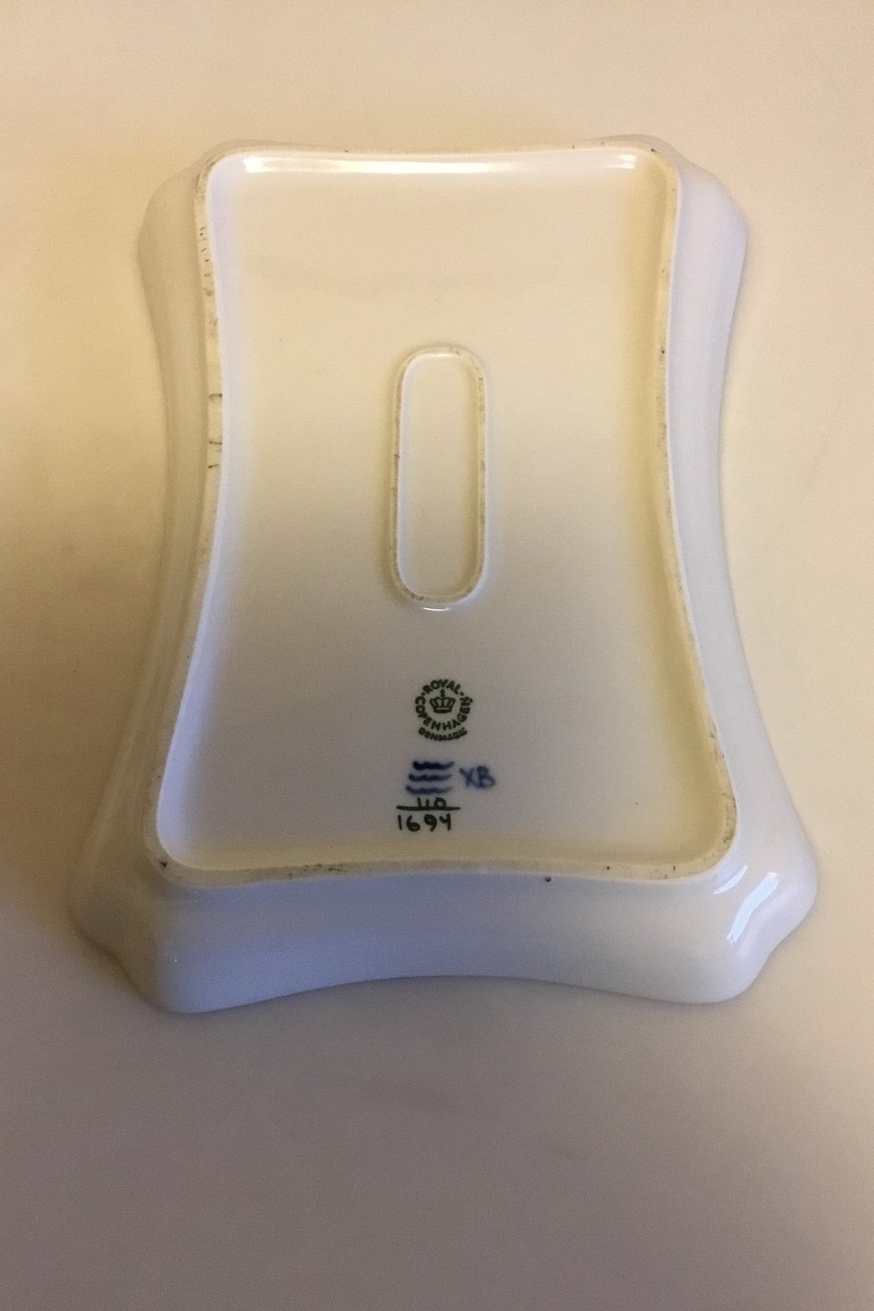Royal Copenhagen Green Flower Curved Rectangular Dish No 1694. Measures 23.5 cm / 9 1/4 in. x 16.5 cm / 6 1/2 in.