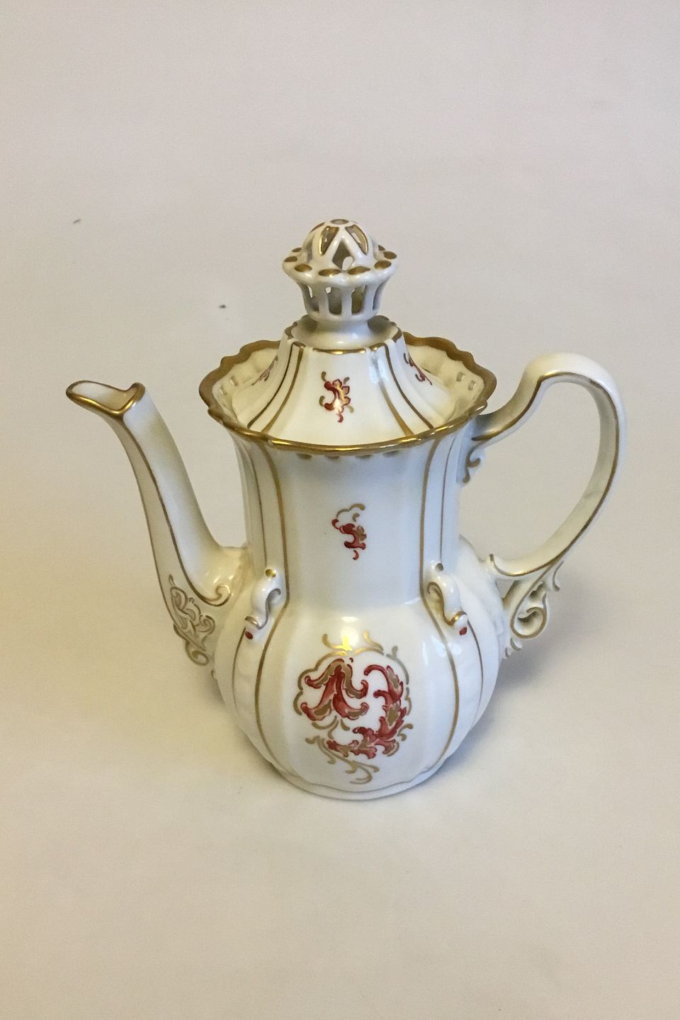 Dahl Jensen Dronning Coffee pot with Gold and Pierced Border. Measures 19 cm / 7 31/64 in.