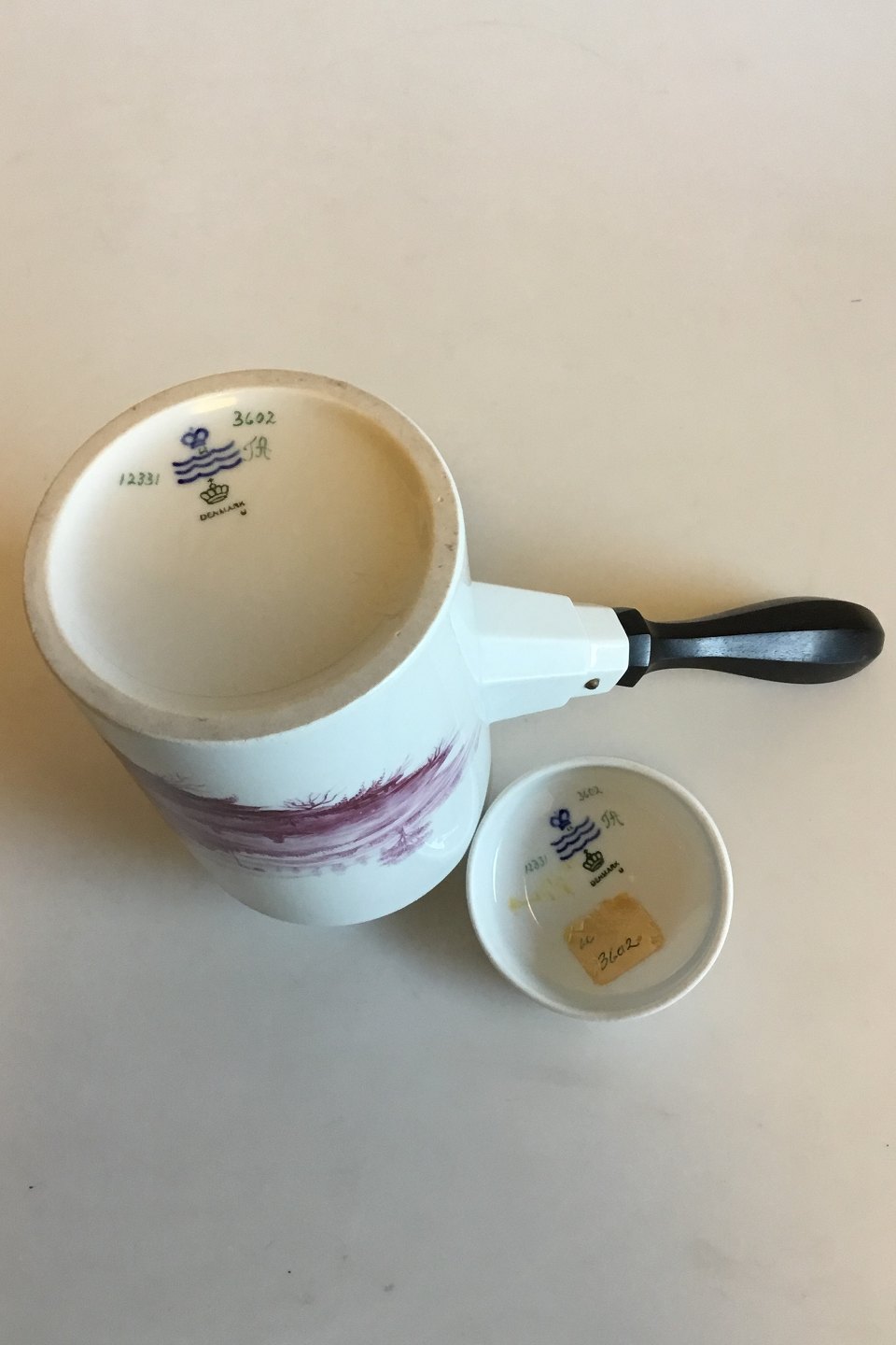 Coffee Cup No 12333, Measures kop: 5.5 cm / 2 11/64 in. x 5.9 cm / 2 21/64 in. dia. Underkop: 12.4 cm / 4 7/8 in. dia. Fra 1948