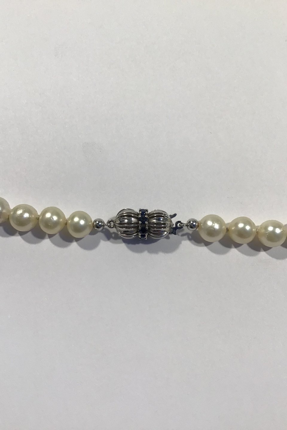 Perlekæde med 14K Hvidguldslås med safirer L 68 cm
