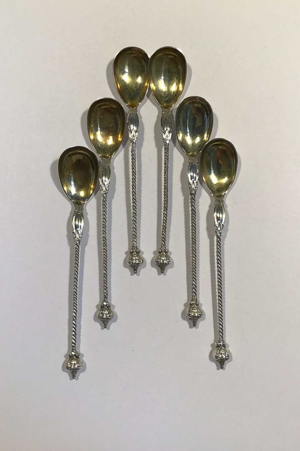 Sølv Kaffeskeer 6 stk. Mestermærket Forgyldt laf L.12.2 cm