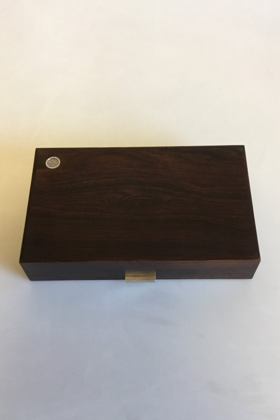 Hans Hansen Box of Rosewood with hinged Lid and Silver inlay. Measures 18 cm / 7 3/32 in. x 11 cm / 4 21/64 in. x 3.6 cm / 1 27/64 in.