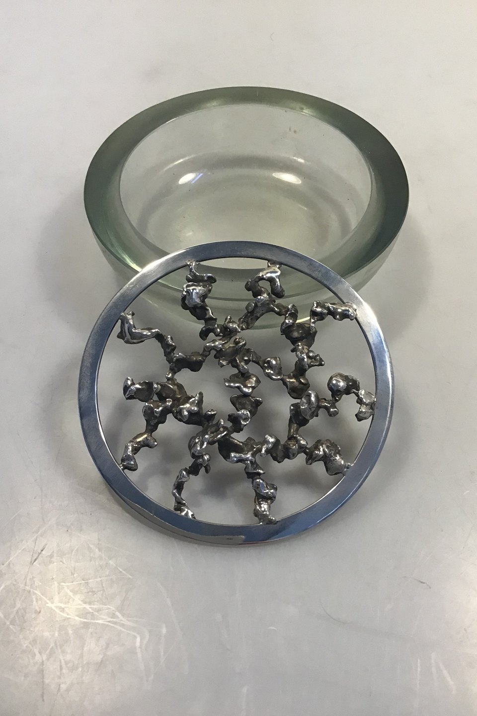 Glasskål med Sterling Sølv Rist Diam på skål 13.5 cm Diam på rist 11 cm