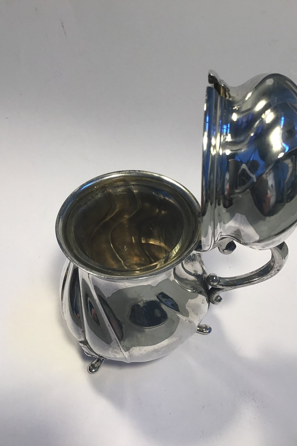 Silver Mustard Pot with lid and glass lining H 11 cm/4.33" Combined weight 146.7 gr/5.17 oz Glass lining with small chip